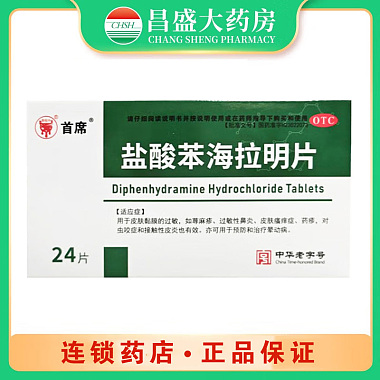 首席 盐酸苯海拉明片 25mg*24片/盒 鸿祥(黑龙江)制药有限公司