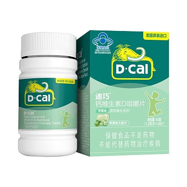 迪巧钙维生素D咀嚼片 苹果味 54g(1.2g*45片)儿童 54g(1.2g*45片) 美国安士制药有限公司