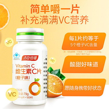 汤臣倍健 维生素C橙子味120片补充VC 成人男士女士vc咀嚼片 78g(650mg/片×120片/瓶) 汤臣倍健股份有限公司