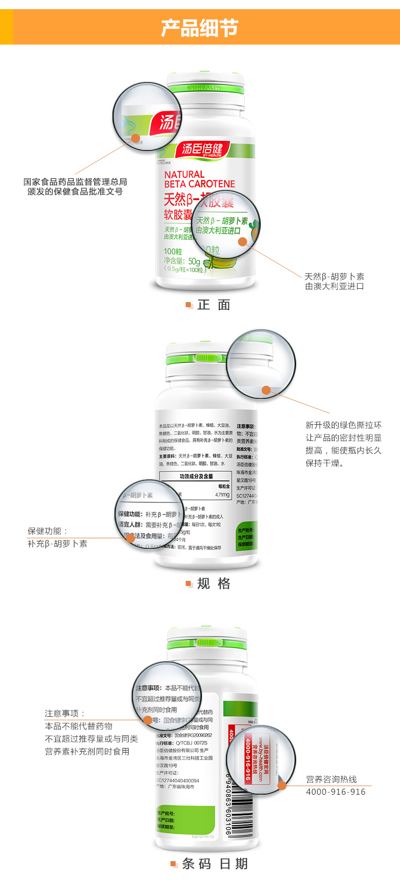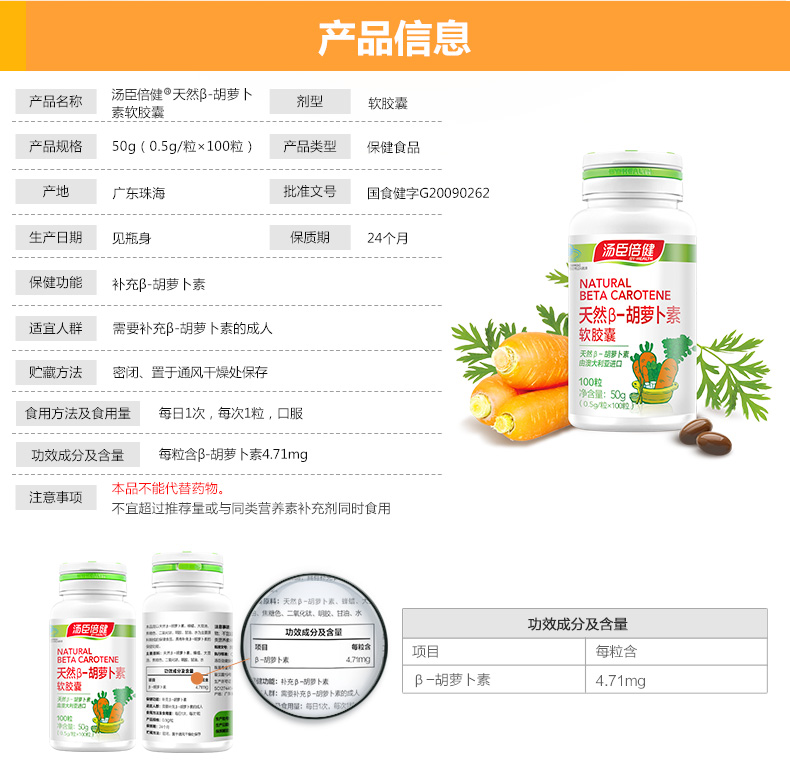 汤臣倍健天然β胡萝卜素软胶囊0.5g/粒*100粒