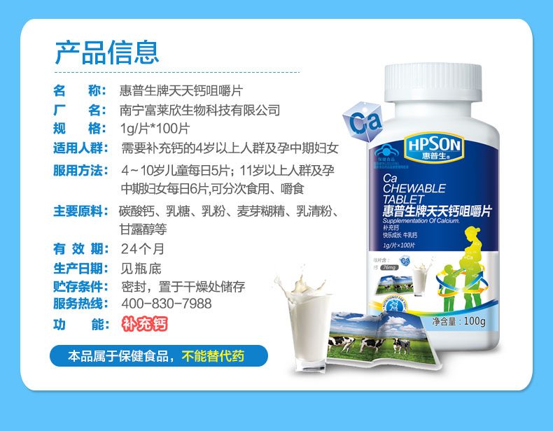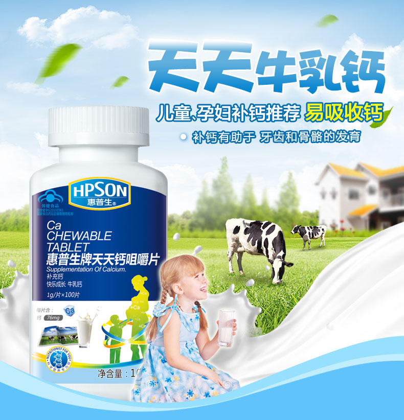 HPSON惠普生牌天天钙咀嚼片1000mg*100片