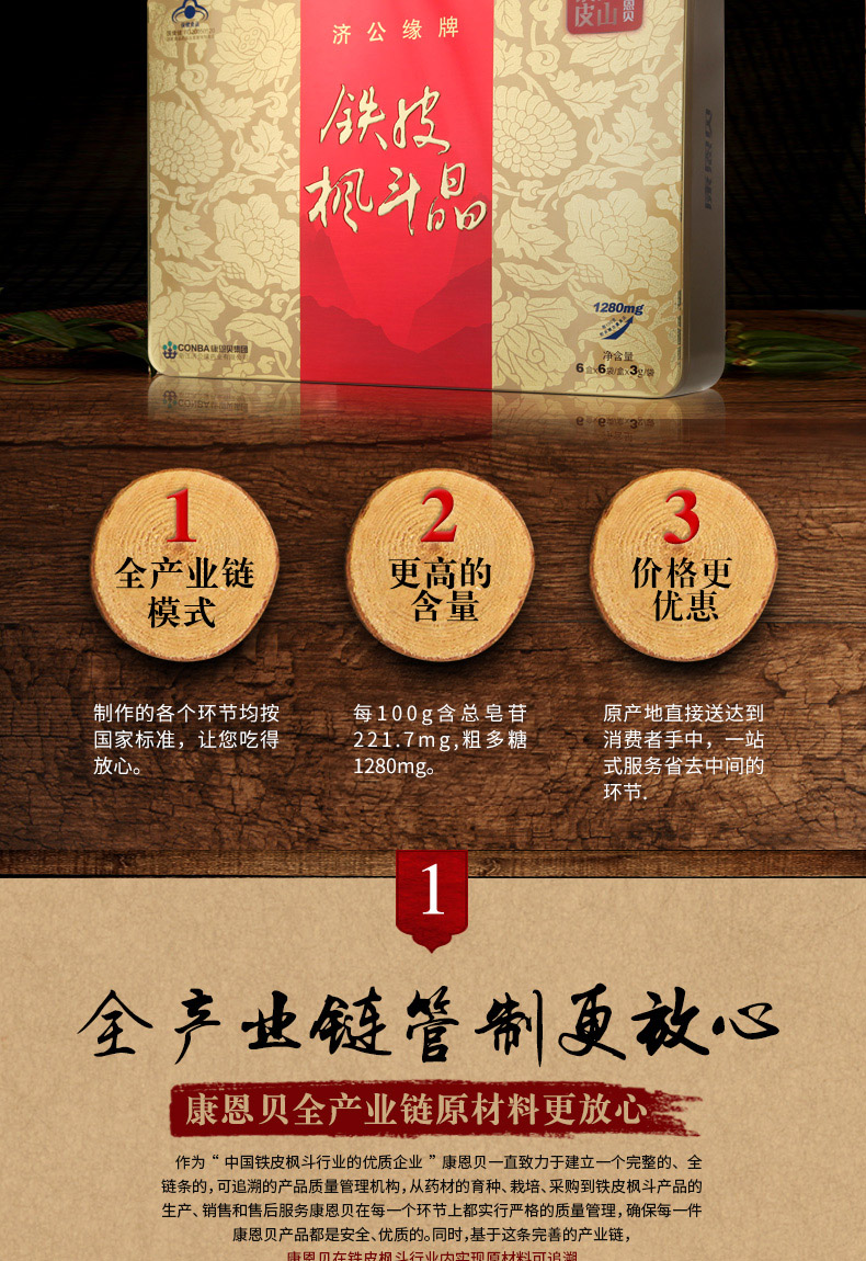 康恩贝高山铁皮 济公缘牌铁皮枫斗晶礼盒装(铁盒)3g*6袋*6盒