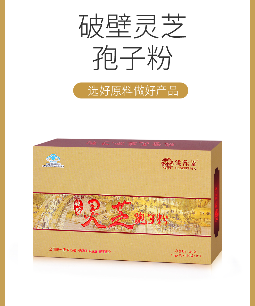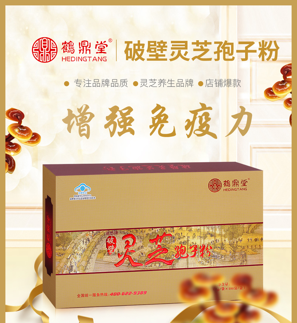 鹤鼎堂 破壁灵芝孢子粉 国产100袋/盒 康复推荐