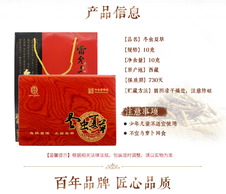 雷允上冬虫夏草5根/克 10克装 西藏那曲虫草