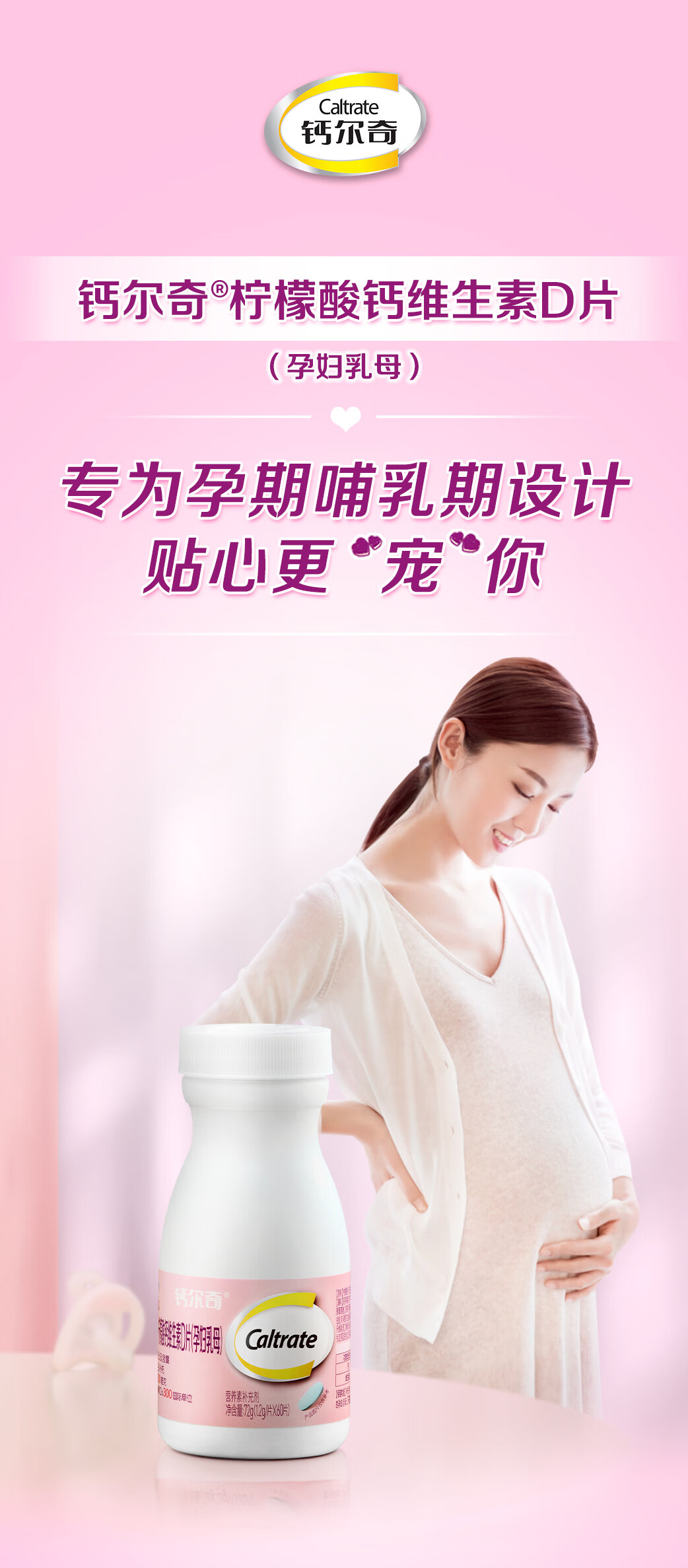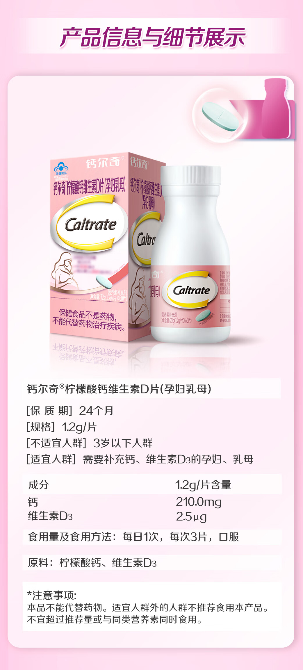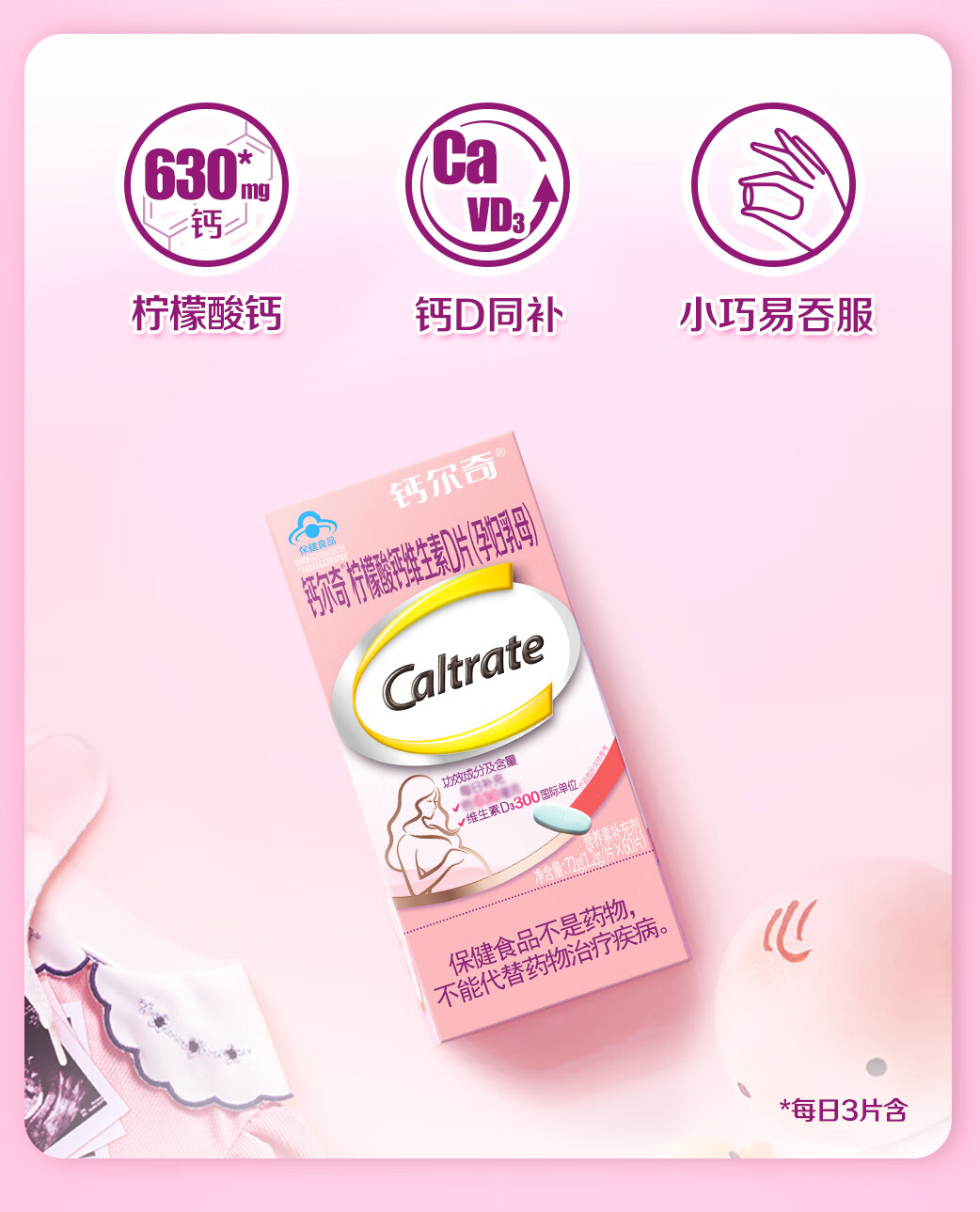 钙尔奇Caltrate柠檬酸钙维生素D片60片 孕妇乳母专用补钙