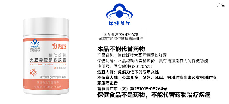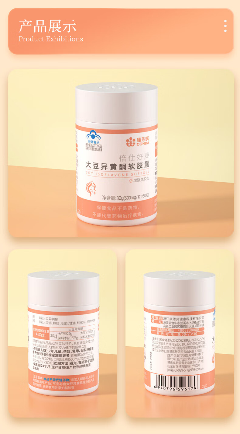 康恩贝大豆异黄酮软胶囊500mg*60粒*3瓶