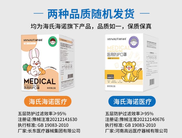海氏海诺医用防护口罩(儿童)(共30只)