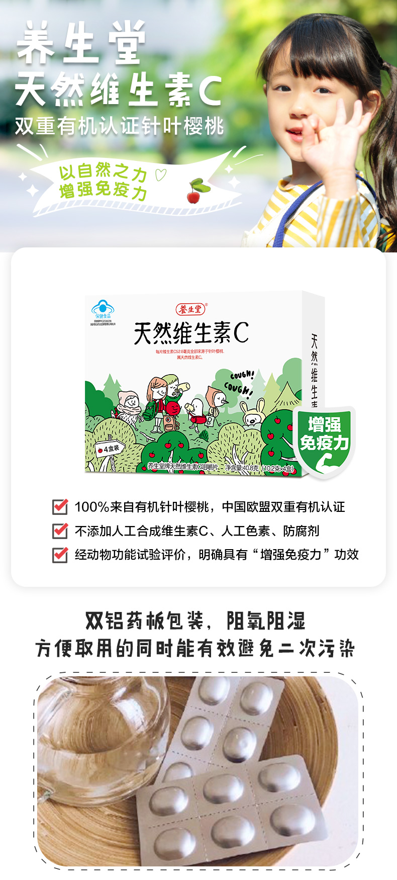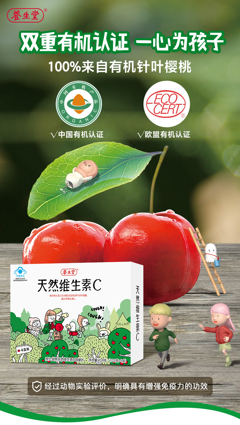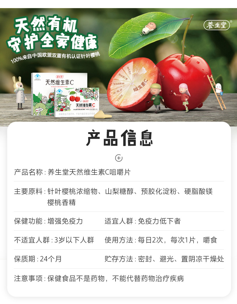 养生堂牌天然维生素C咀嚼片48片(儿童型) 增强免疫力