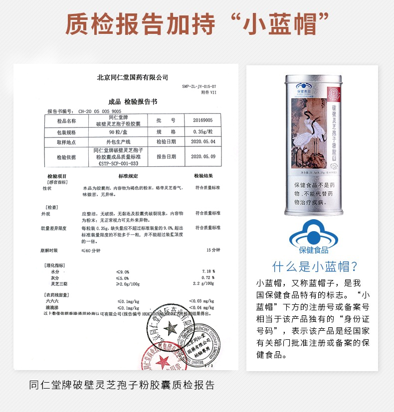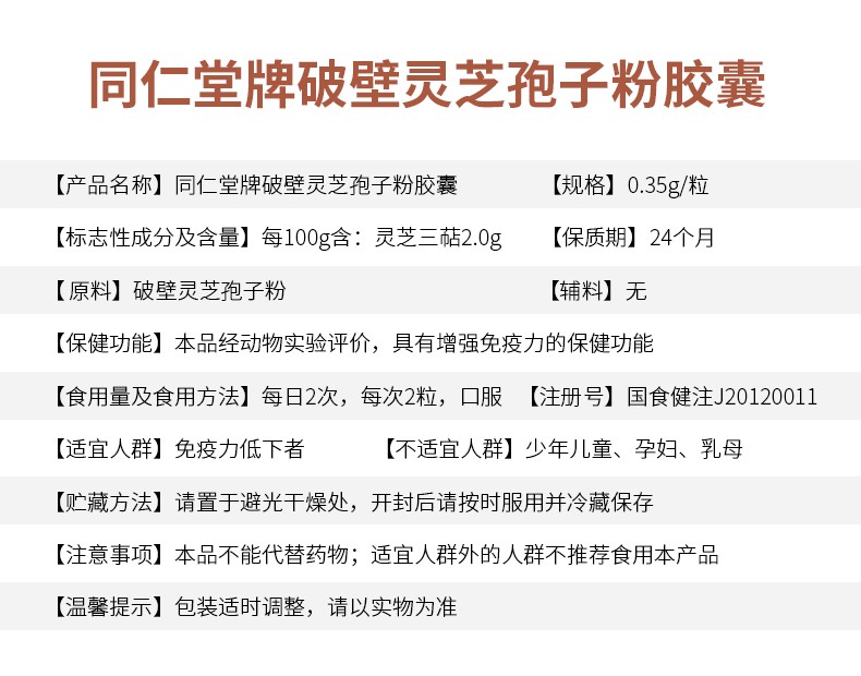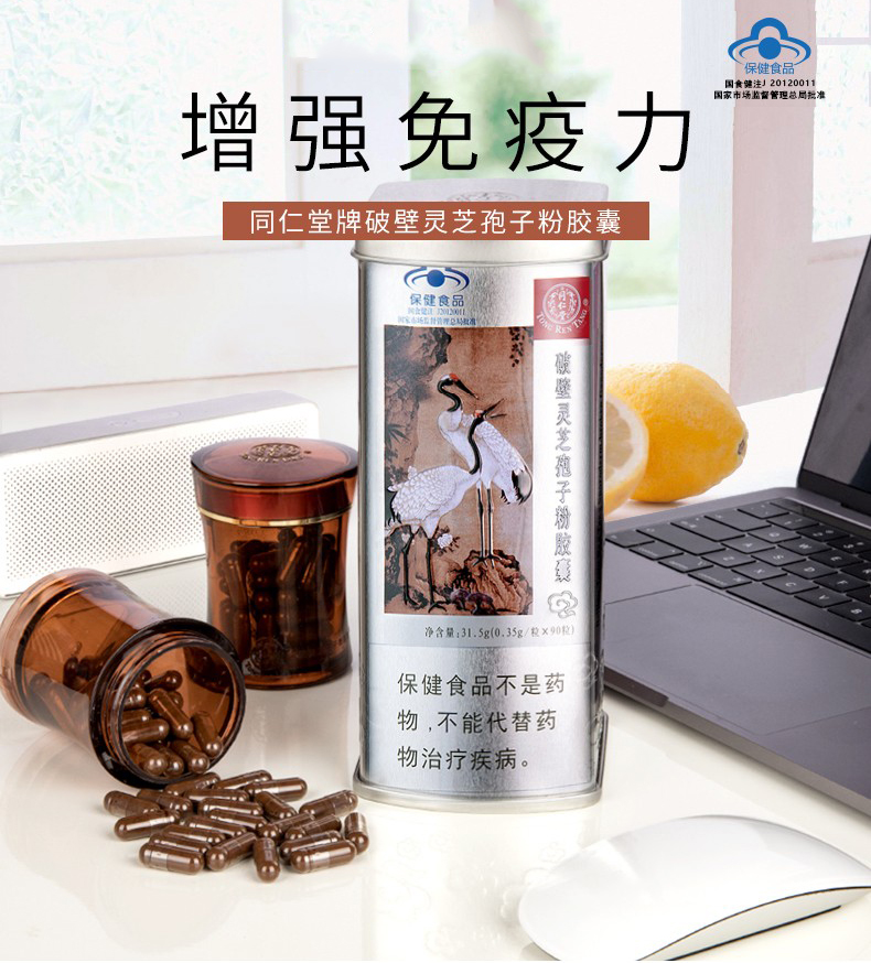 同仁堂破壁灵芝孢子粉胶囊0.35g*90粒/盒