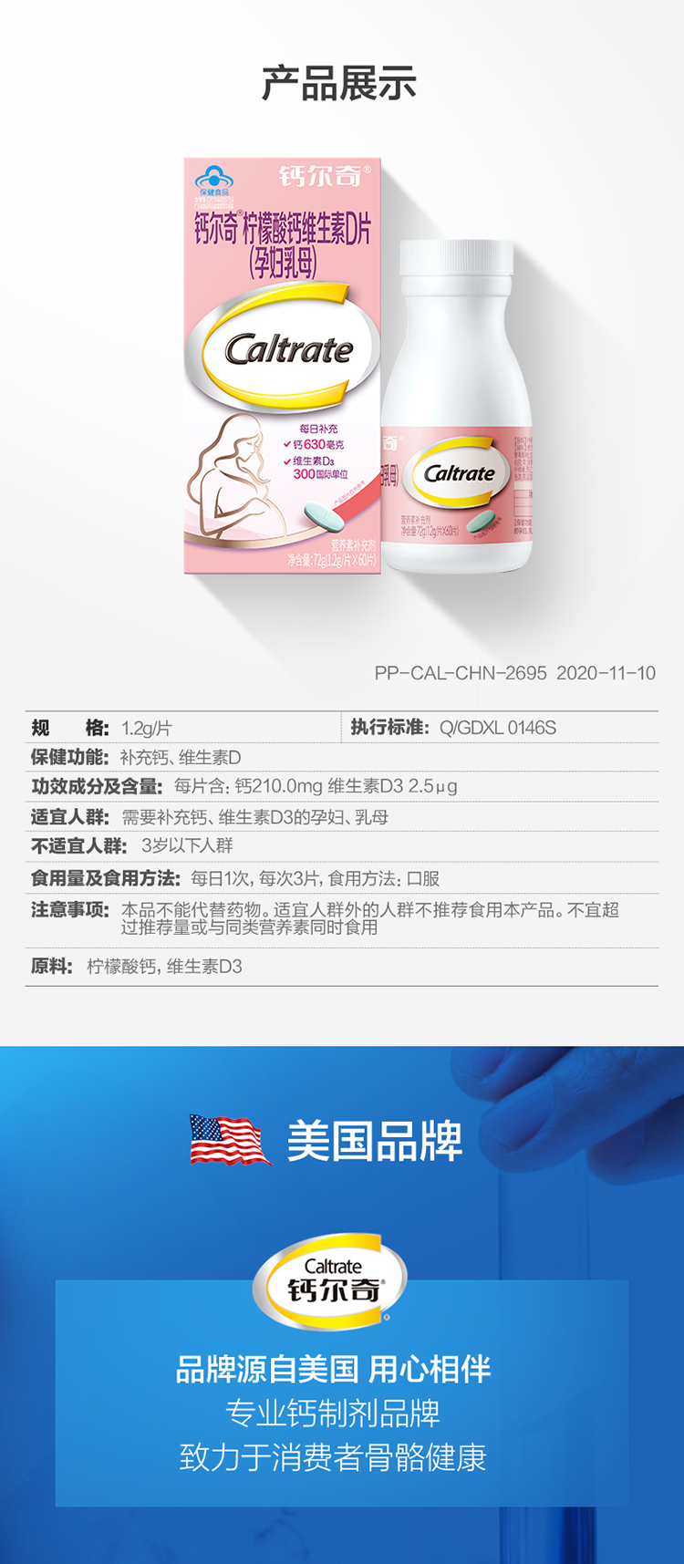 钙尔奇柠檬酸钙维生素D片(孕妇母乳)60片