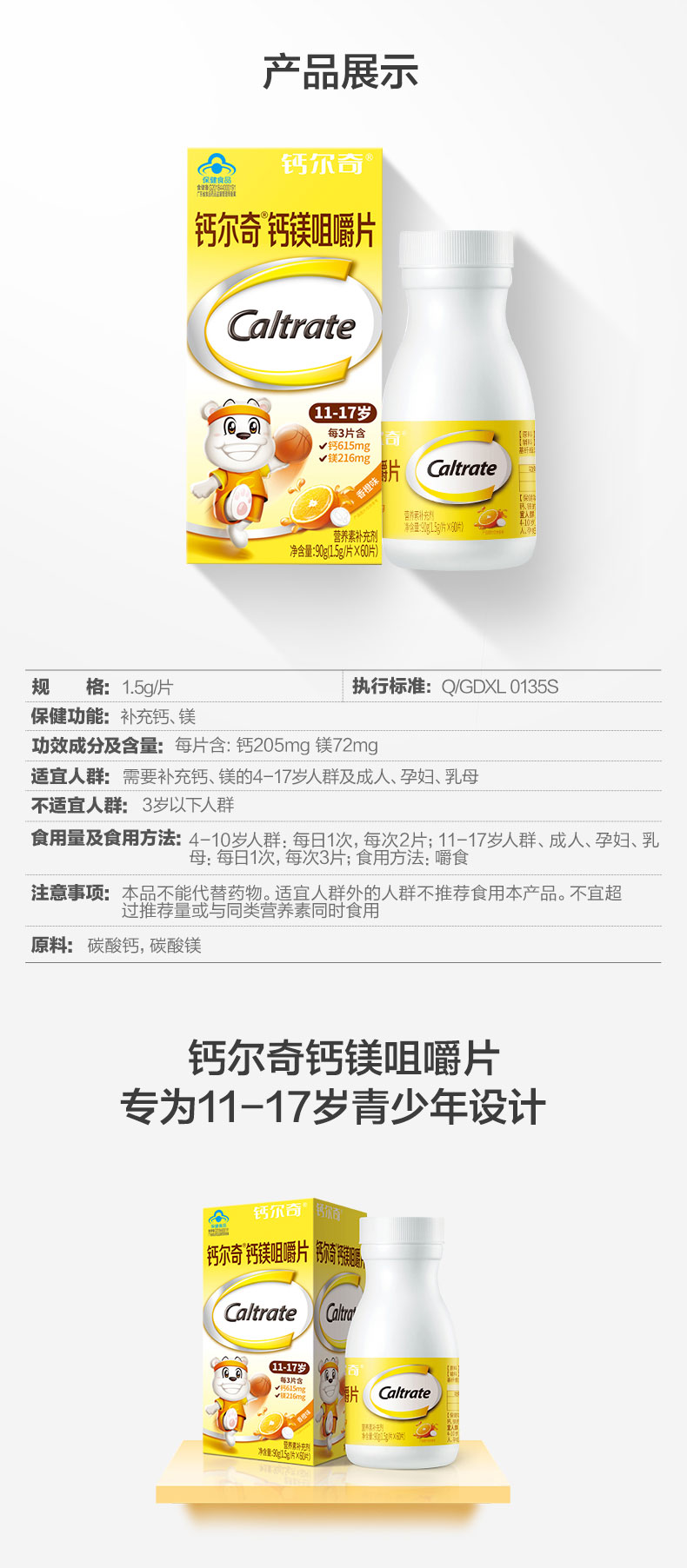 钙尔奇钙镁咀嚼片(11-17岁)60片