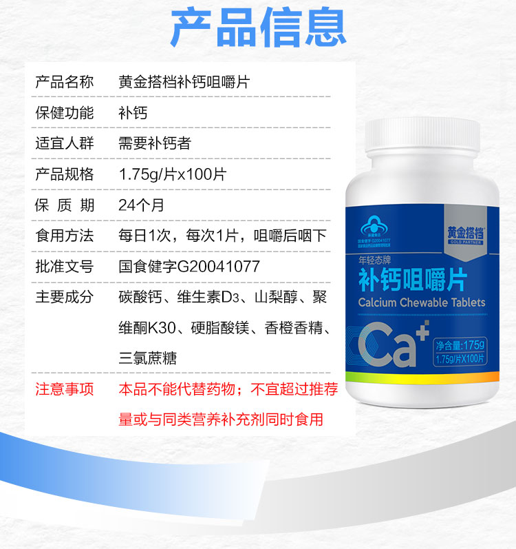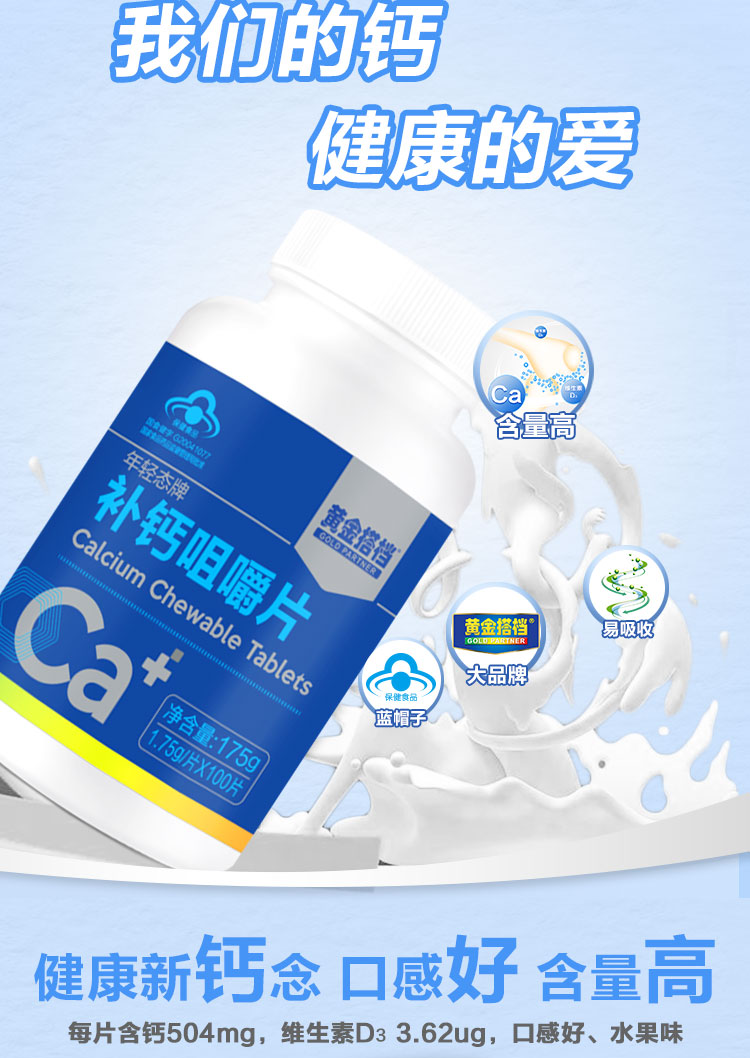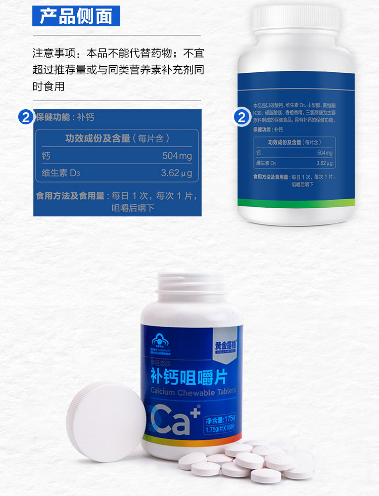 黄金搭档 补钙咀嚼片100粒1.75g/片*100片