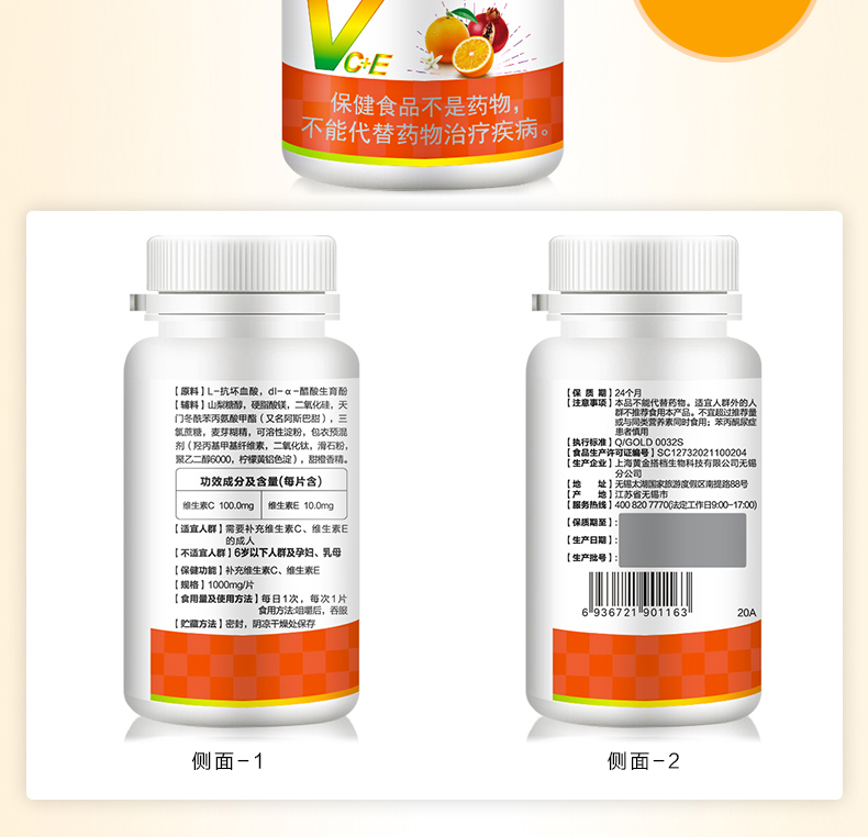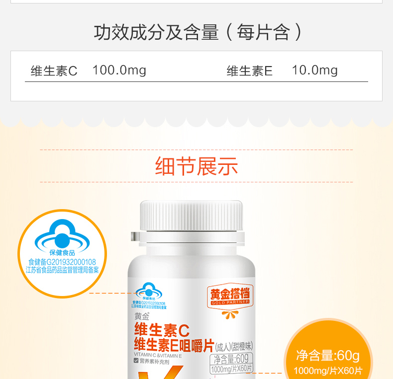 黄金搭档维C维E咀嚼片60片1000mg/片*60片
