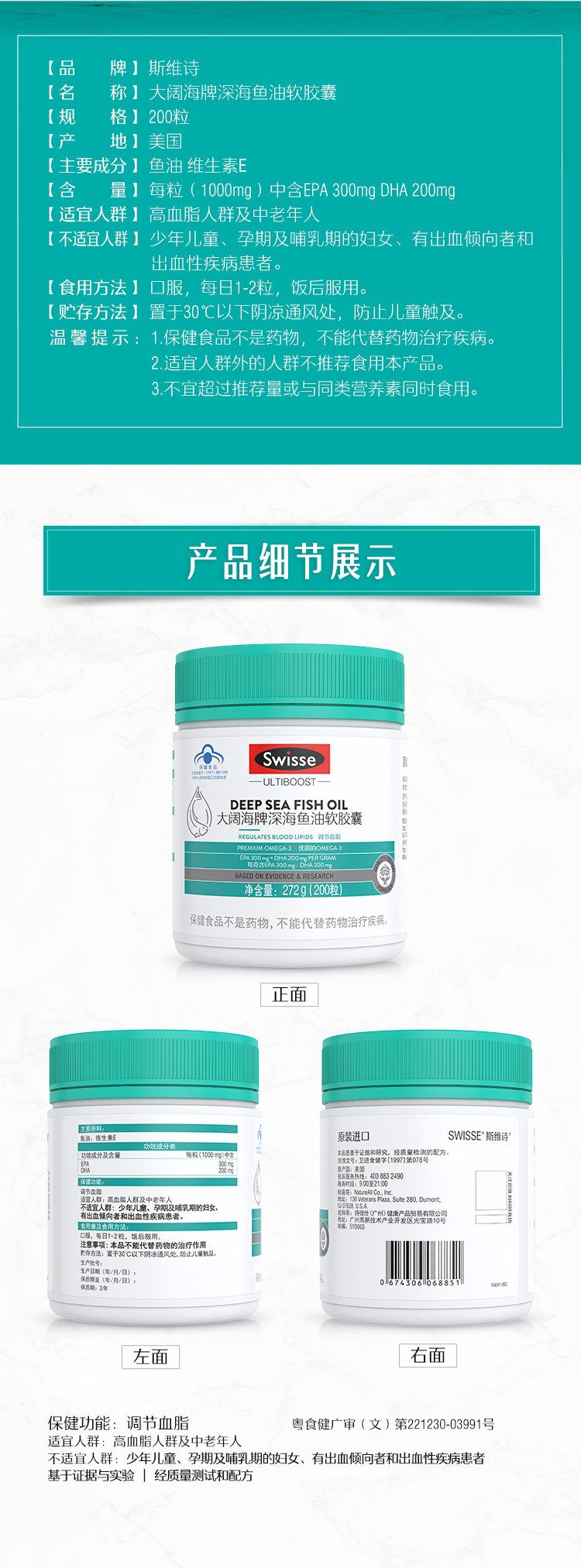Swisse大阔海牌深海鱼油软胶囊272g(200粒)