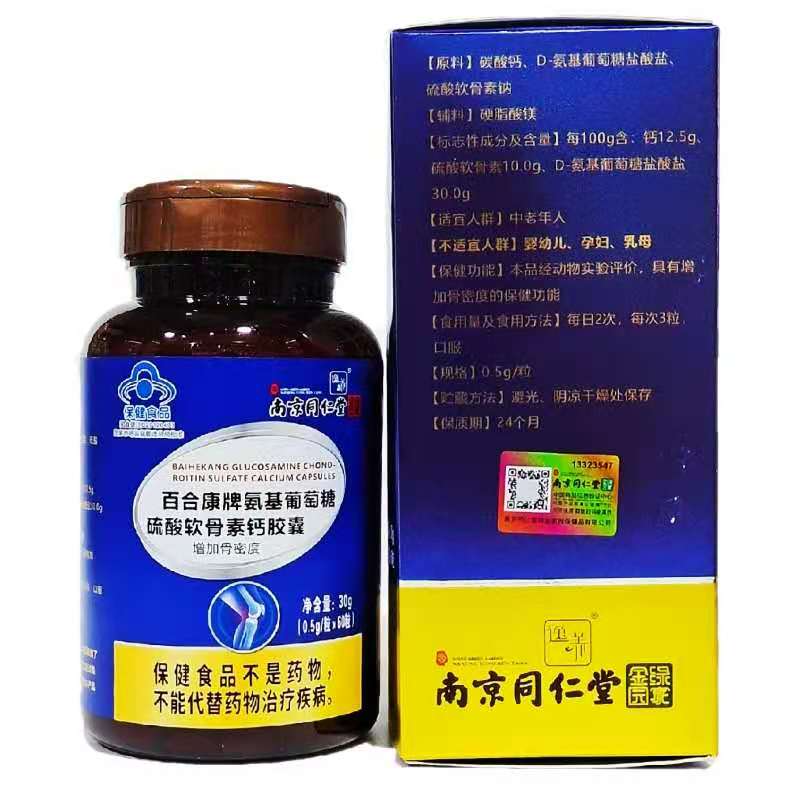 南京同仁堂 百合康牌氨基葡萄糖硫酸软骨素钙胶囊 60粒/盒