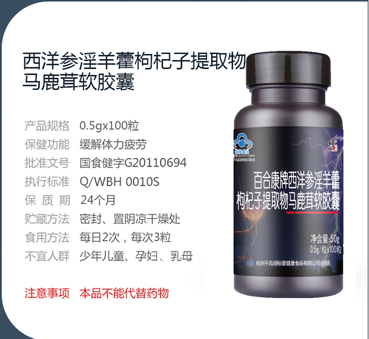 修正西洋参淫羊藿枸杞子提取物马鹿茸软胶囊100粒