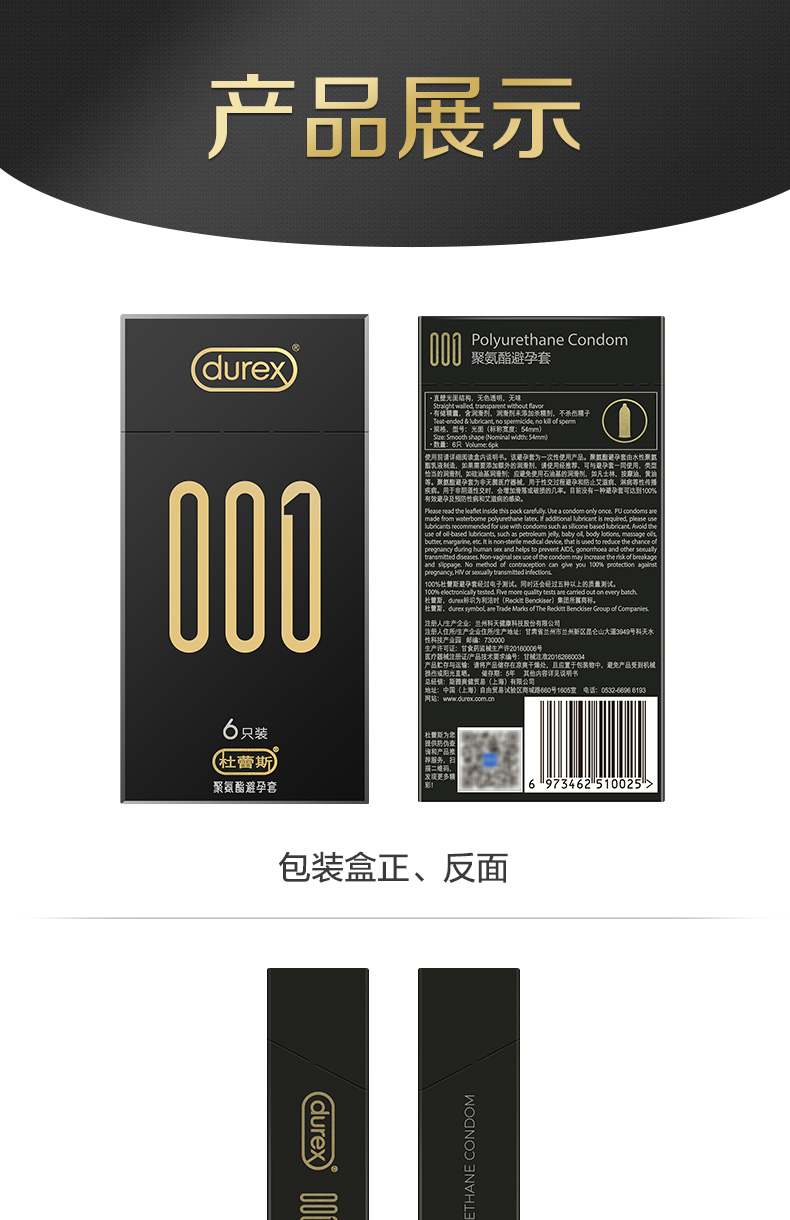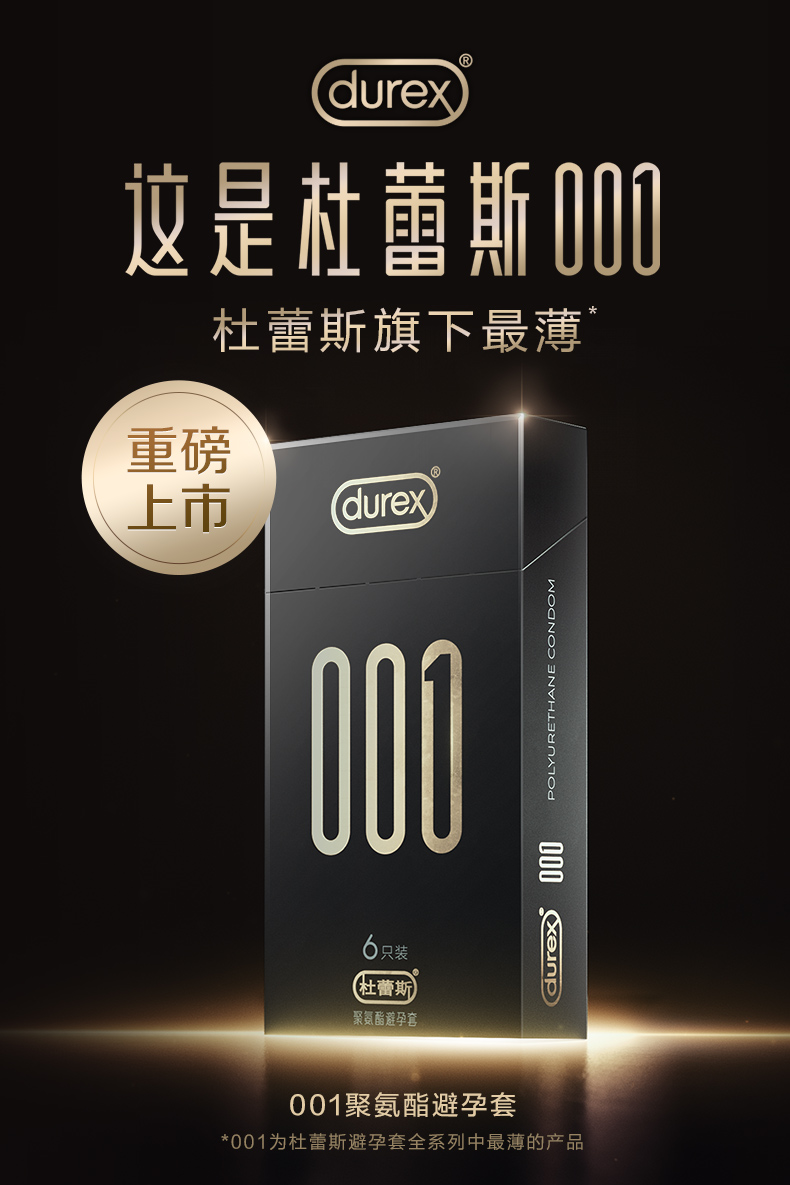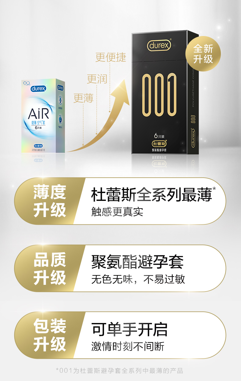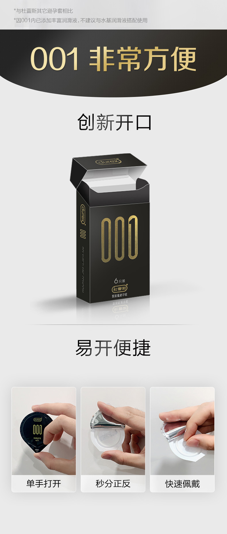【杜杜最薄001】杜蕾斯001超薄6只装 杜蕾斯旗下最薄 超薄顺滑 聚氨酯避孕套