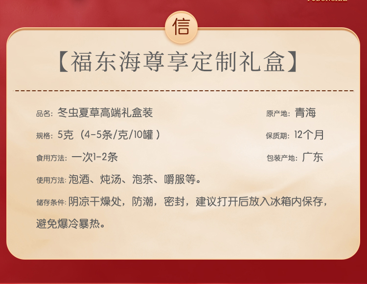 福东海 冬虫夏草5克 送礼礼盒装 共20条
