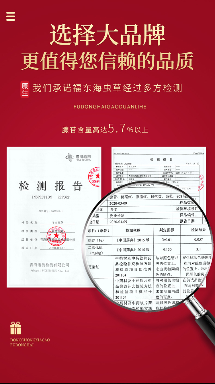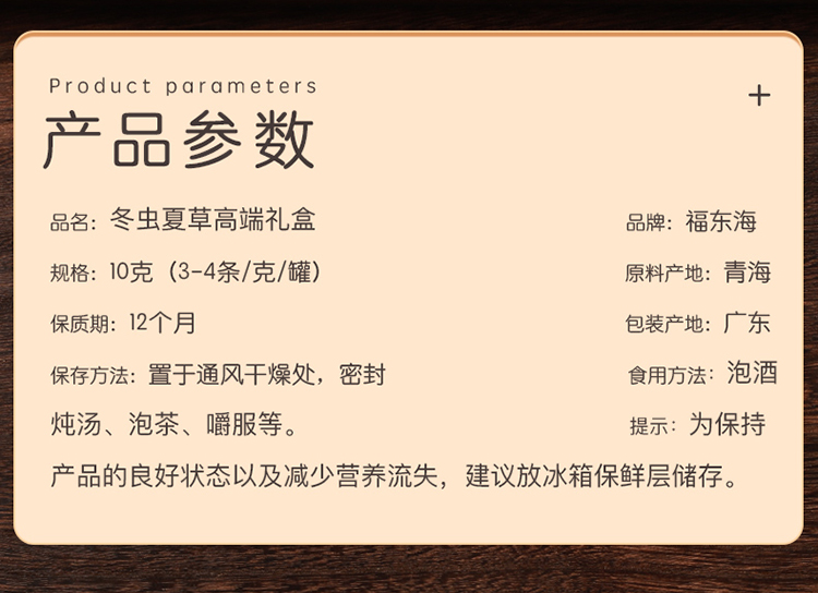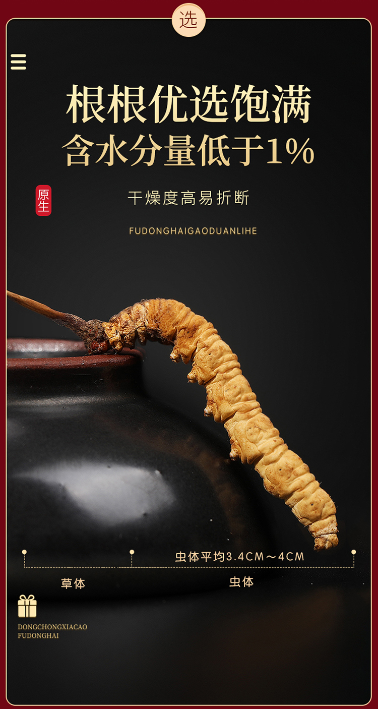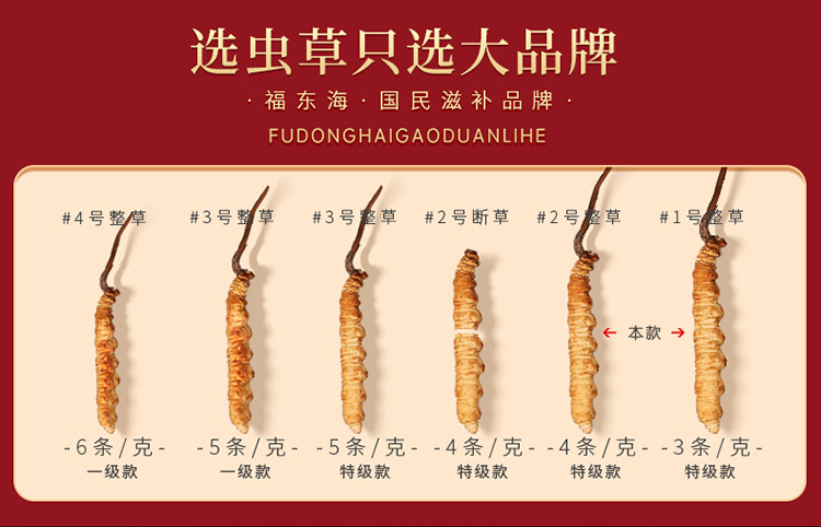 福东海 冬虫夏草10克特级品质整条( 3-4条/g)