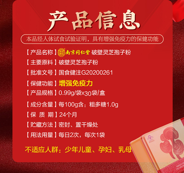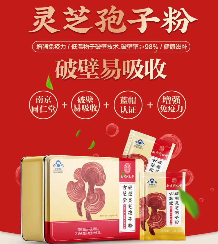 南京同仁堂古芝堂破壁灵芝孢子粉30g