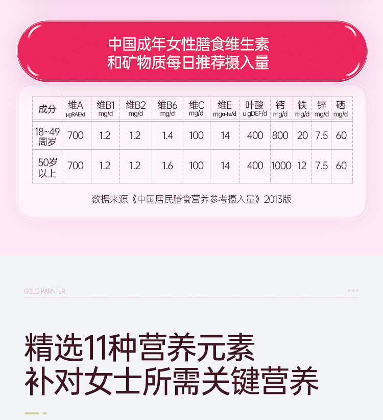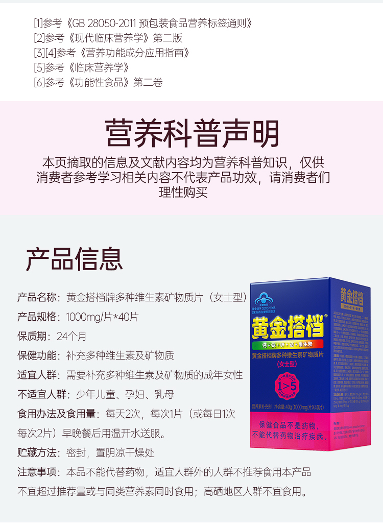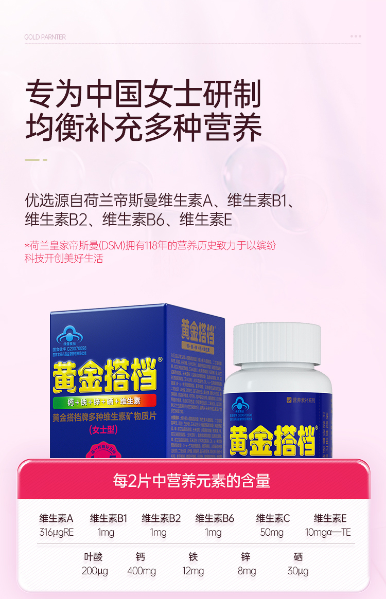 黄金搭档牌多种维生素片(女士型)40g(1000mg/片*40片)