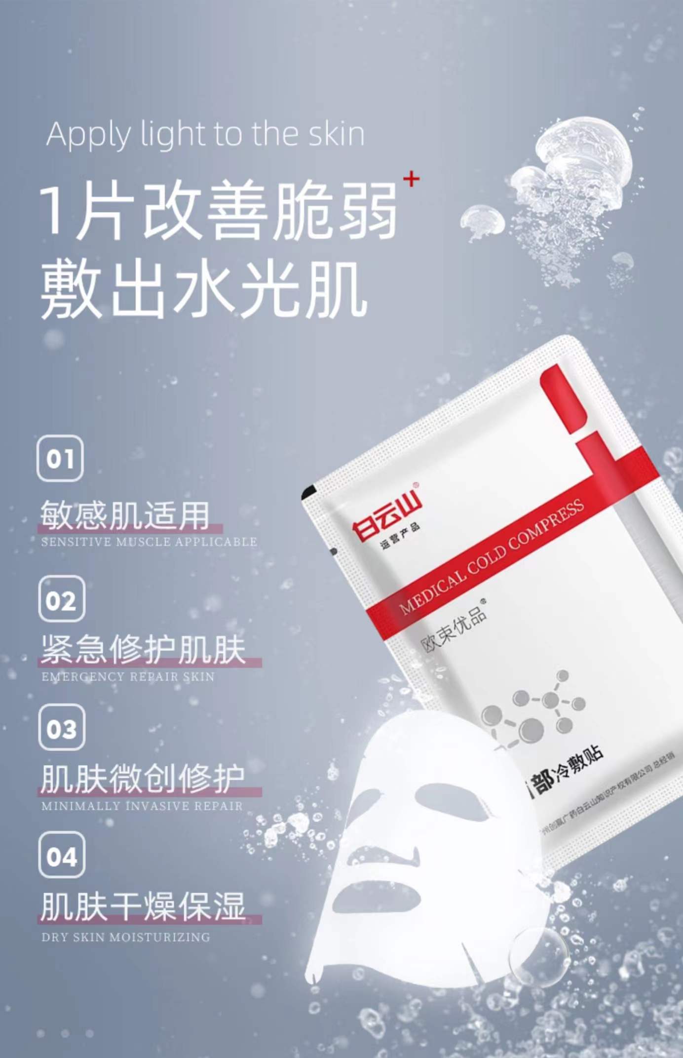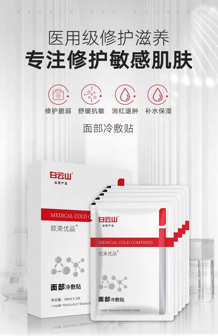 【8.1-8.15日期间买二送一】广药白云山冷敷贴欧束优品面部冷敷贴30mlx5片医用面膜冷敷贴术后修复敏感肌肤敷料 医美淡化痘印补水保湿面部修复膜