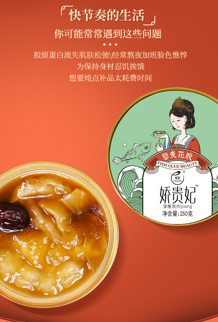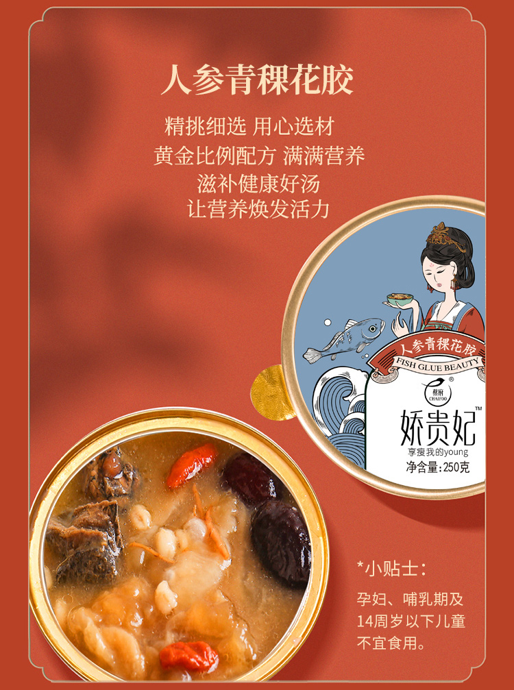 蔡府 即食花胶 元气人参花胶250g*3盒 鲜炖花胶鱼胶