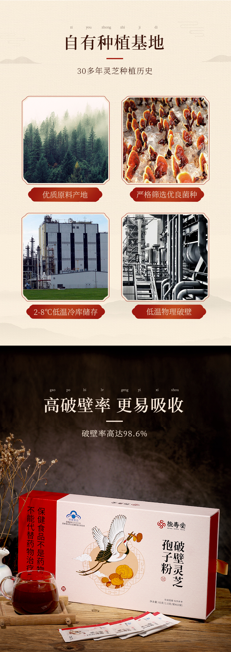 恒寿堂破壁灵芝孢子粉2盒装