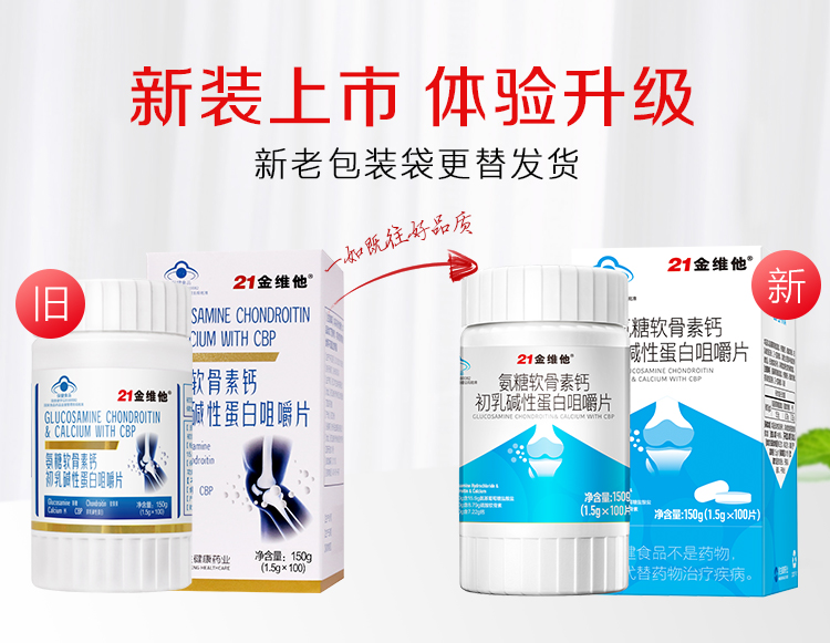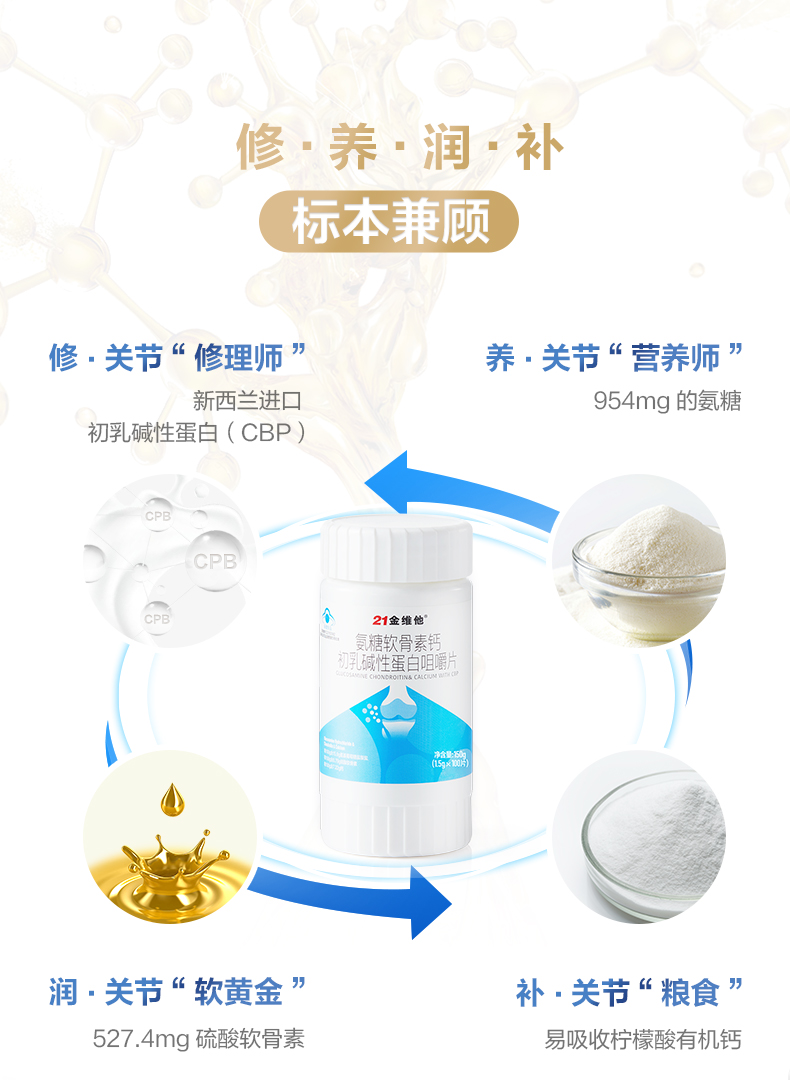 21金维他氨糖软骨素钙初乳碱性蛋白咀嚼片150g(1.5*100片/盒)