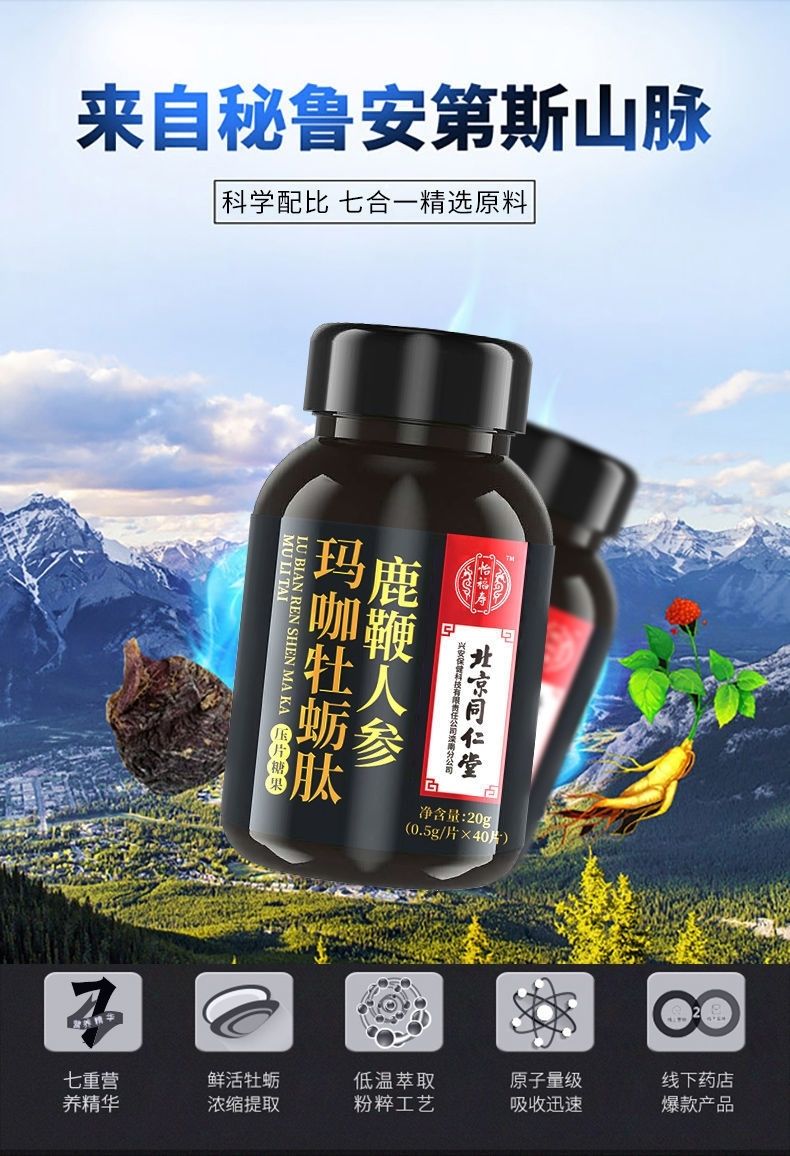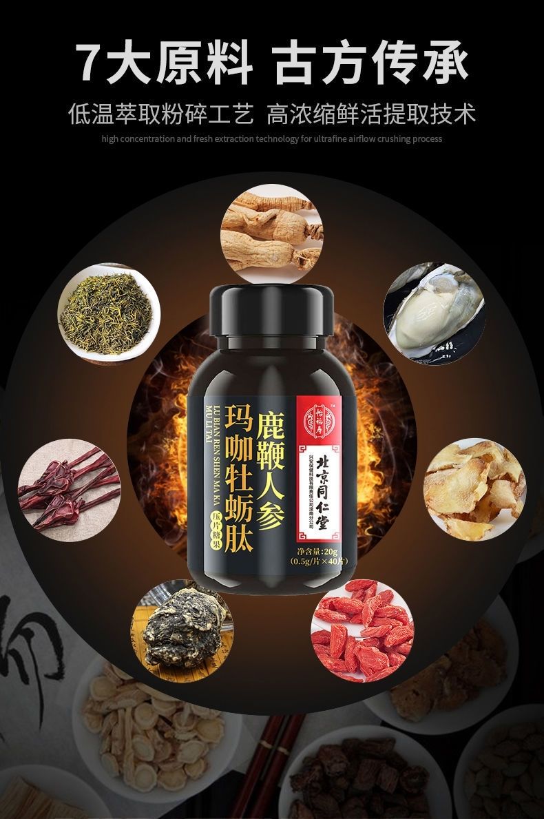 北京同仁堂怡福寿鹿鞭人参玛咖牡蛎肽片0.5g*40粒 /瓶