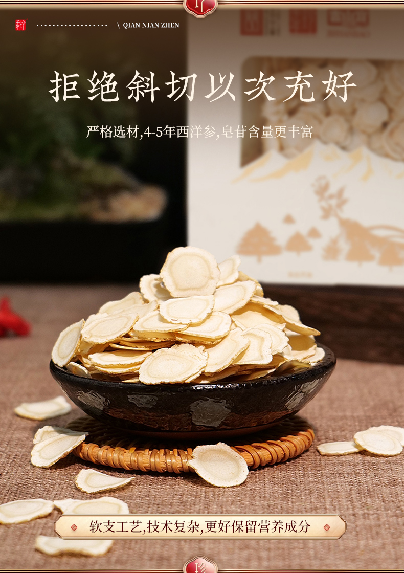 千年珍西洋参片1.4cm礼盒120g(60g/盒*2盒)