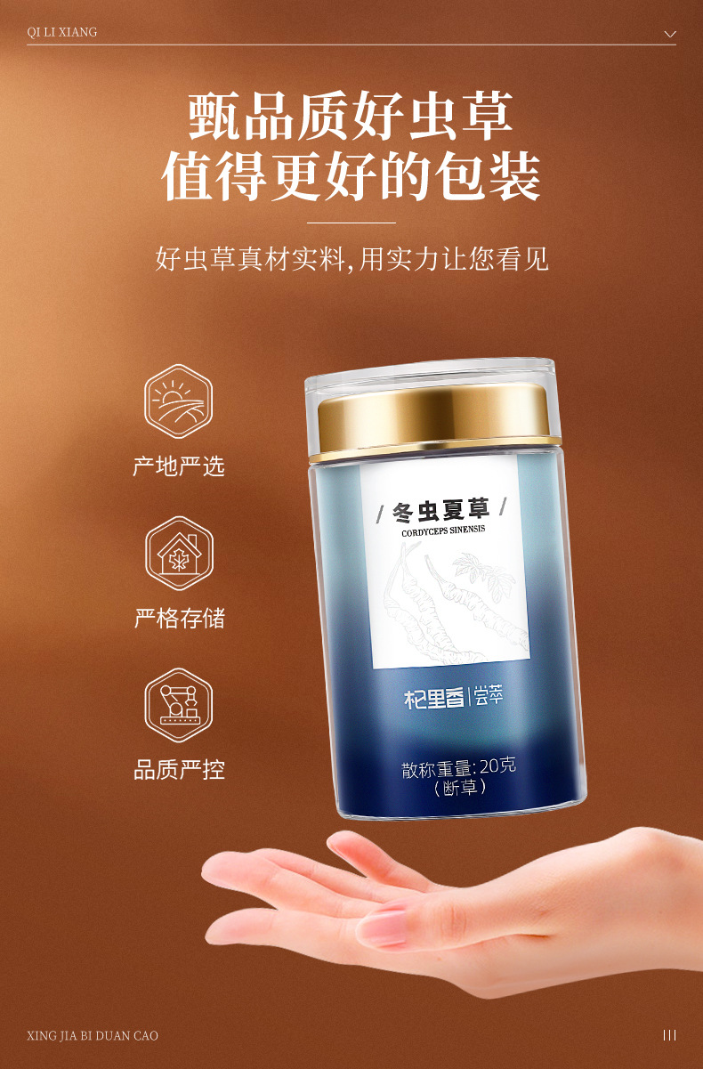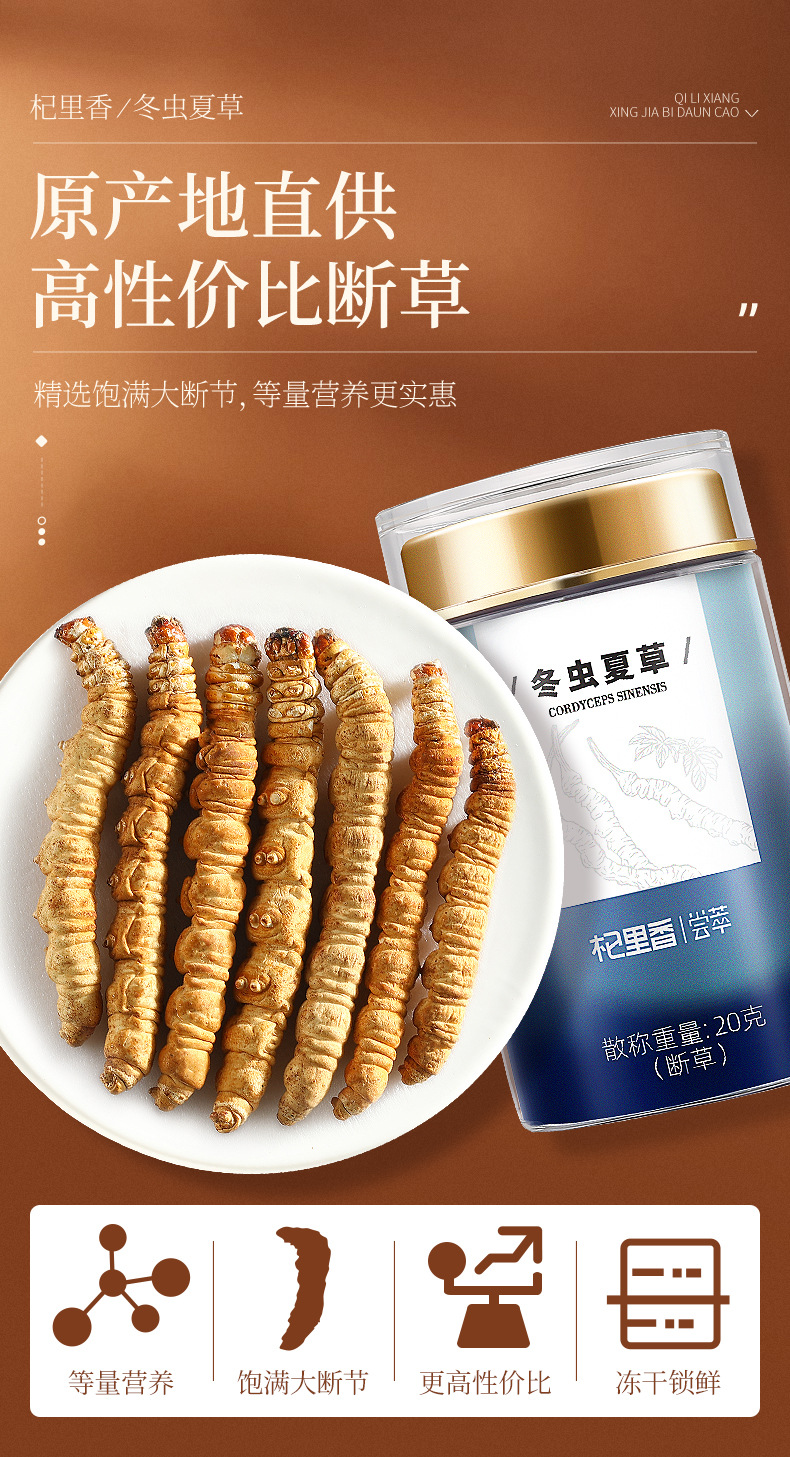 杞里香冬虫夏草20g瓶装(断草)高品质洁净饱满干度足送礼物滋补