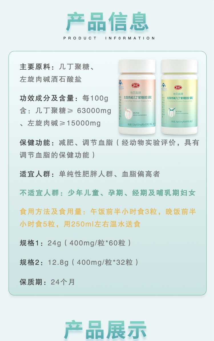 汇仁左旋肉碱几丁聚糖胶囊24g(0.4g*60粒)