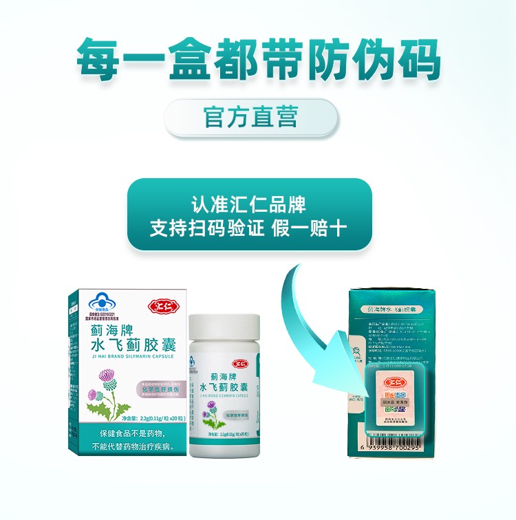 汇仁蓟海牌水飞蓟胶囊护肝片2.2g(0. 11g *20粒)