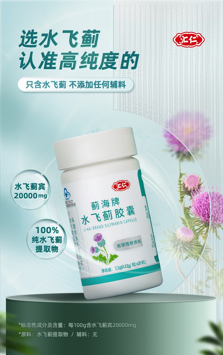 汇仁蓟海牌水飞蓟胶囊护肝片2.2g(0. 11g *20粒)*3瓶