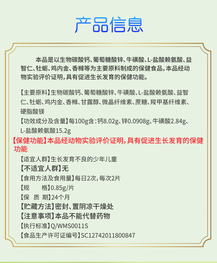 北京同仁堂 天天长佳尔利片促进青少年儿童生长发育 24片/盒