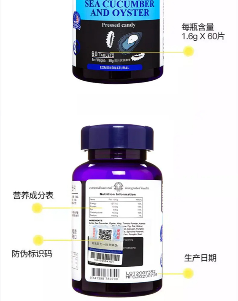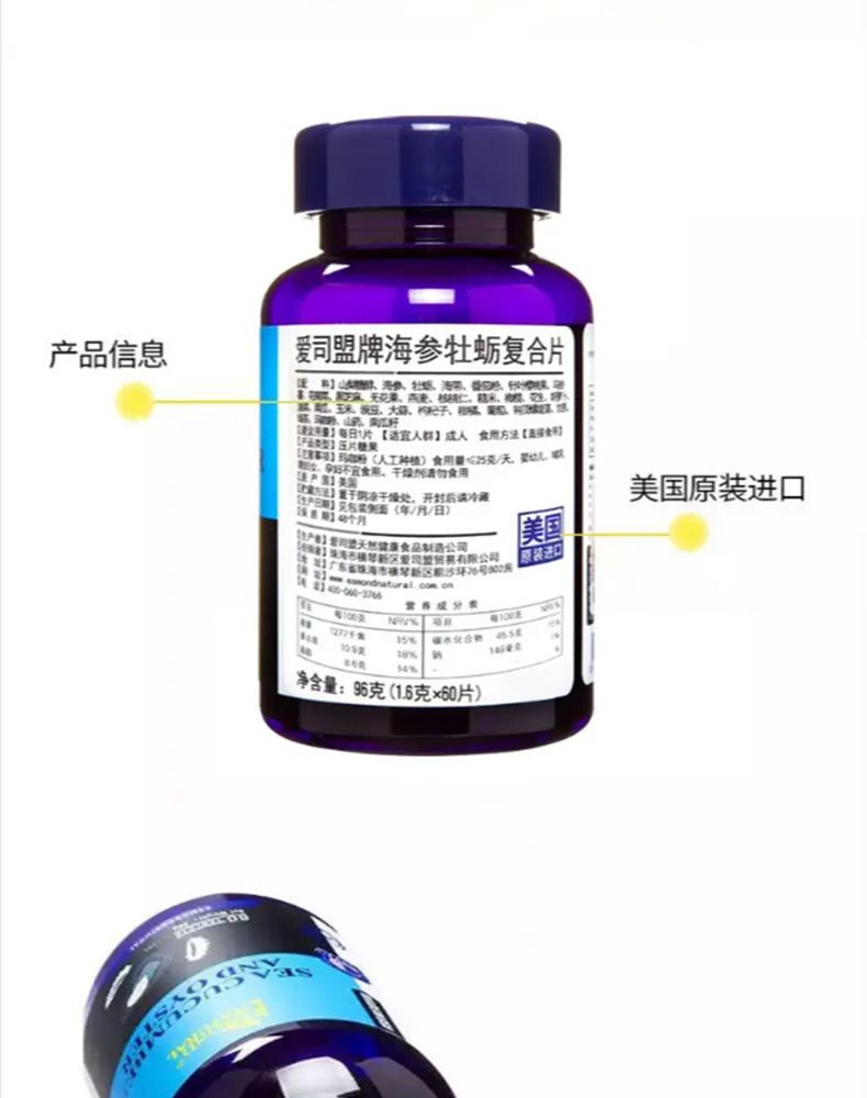 爱司盟牌海参牡蛎复合片 96g(1.6g*60粒) 海参牡蛎 浓缩”一“粒