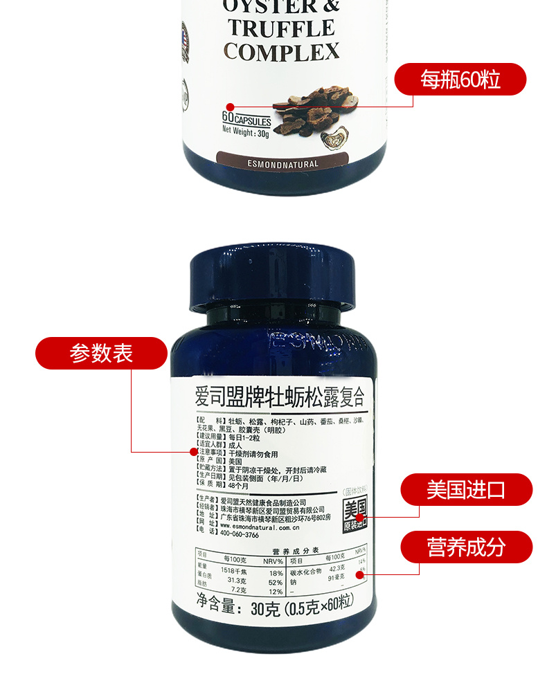 爱司盟牌牡蛎松露复合片 30g(0.5g*60粒) 多重营养 补充男性所需