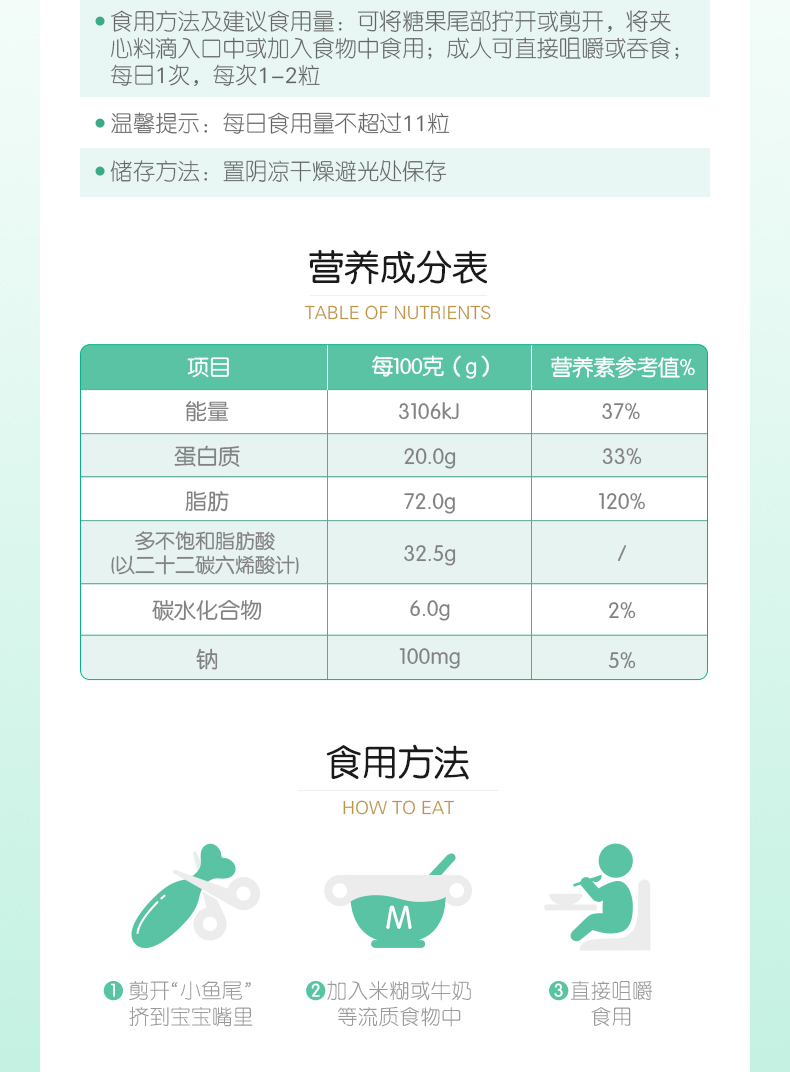 天然博士鱼油DHA 30粒*2瓶 婴幼儿宝宝儿童孕妇成人可食用dha