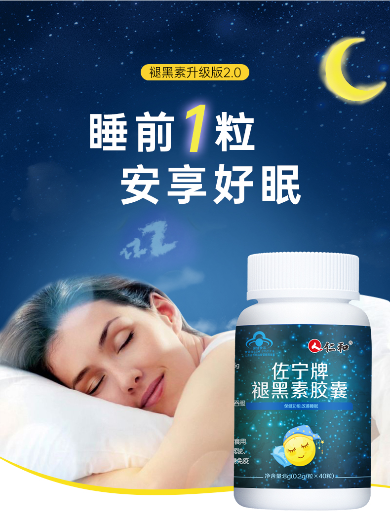 仁和佐宁牌褪黑素胶囊8g(0.2g/粒*40粒) *2瓶 改善睡眠