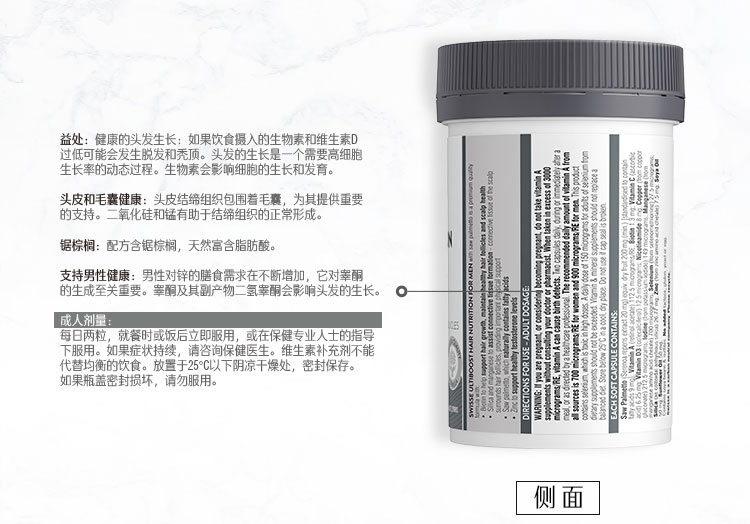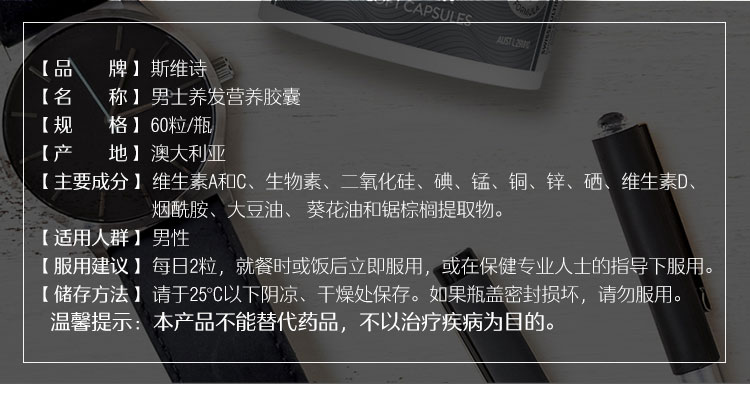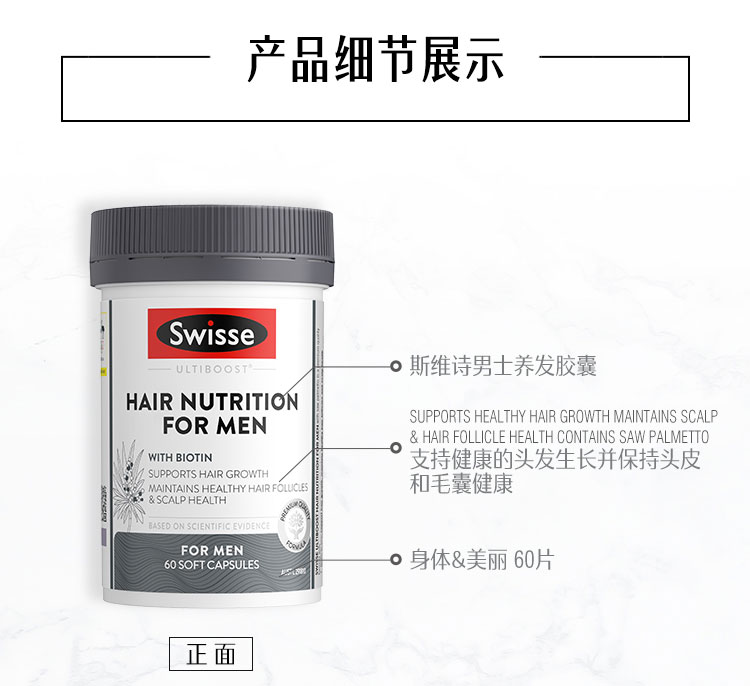 【跨境无中文标贴】澳洲Swisse男士生发养发胶囊 营养头发复合胶囊60片