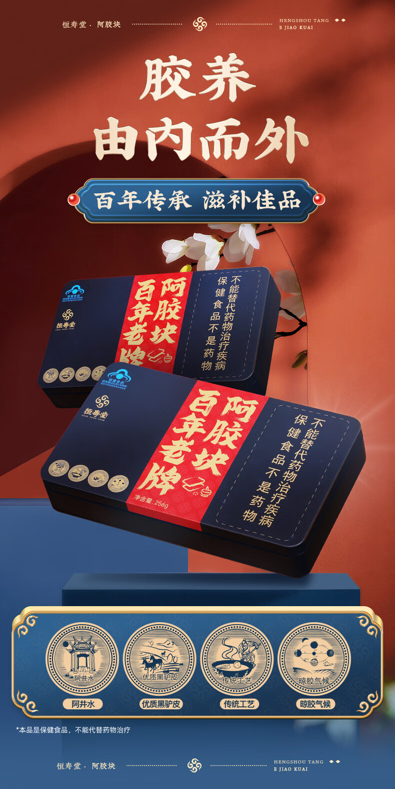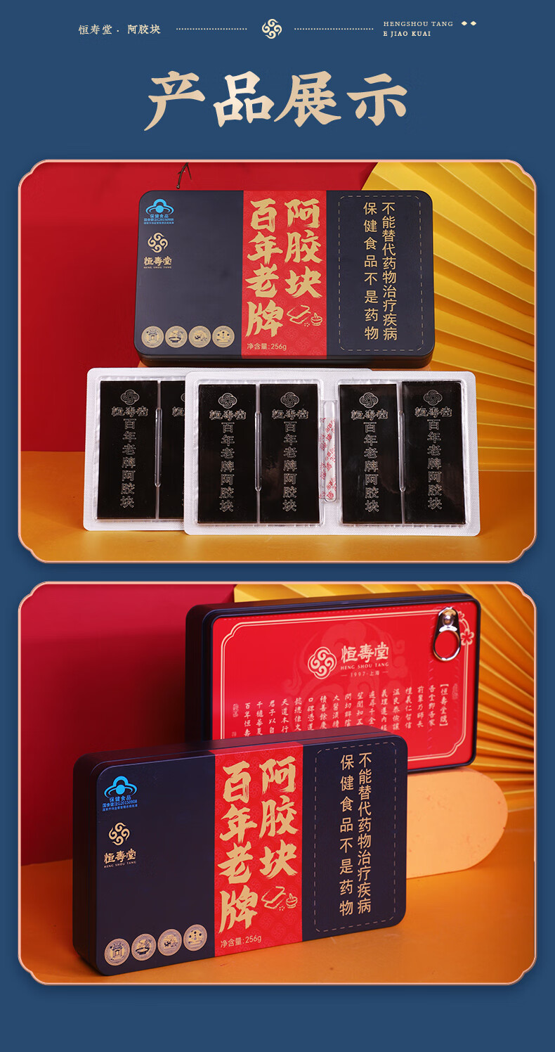 恒寿堂百年老牌阿胶块256g*2盒 百年传承 滋补佳品