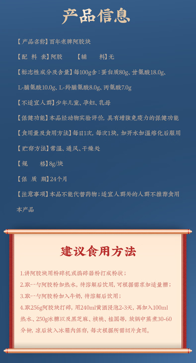 • 生产企业:山东东阿百年堂阿胶生物制品股份有限公司