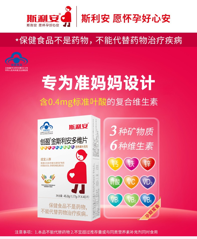 创盈 金斯利安多维片【1.17克*40片】*2盒 备孕孕期哺乳期叶酸维生素 斯利安 孕妇复合维生素