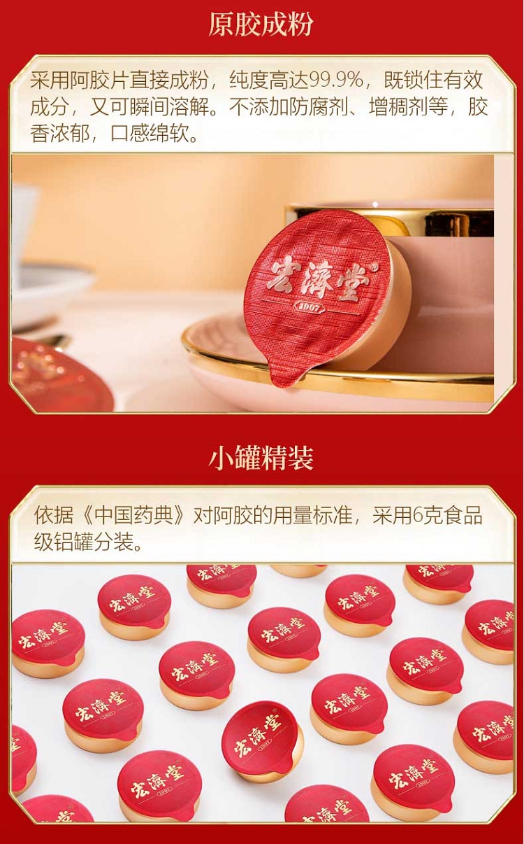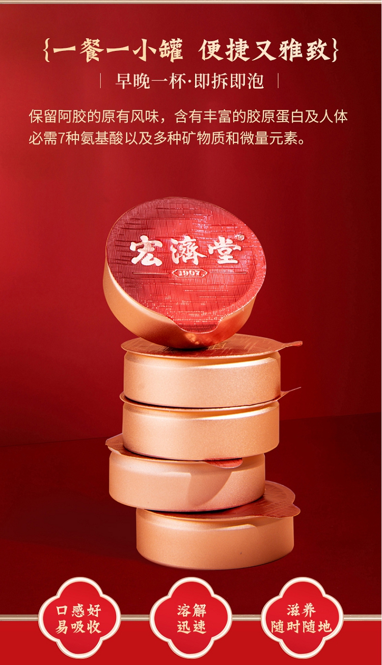 宏济堂 阿胶速溶粉(小罐)90g(6g/罐×15罐)/盒 一餐一小罐 便捷又优雅