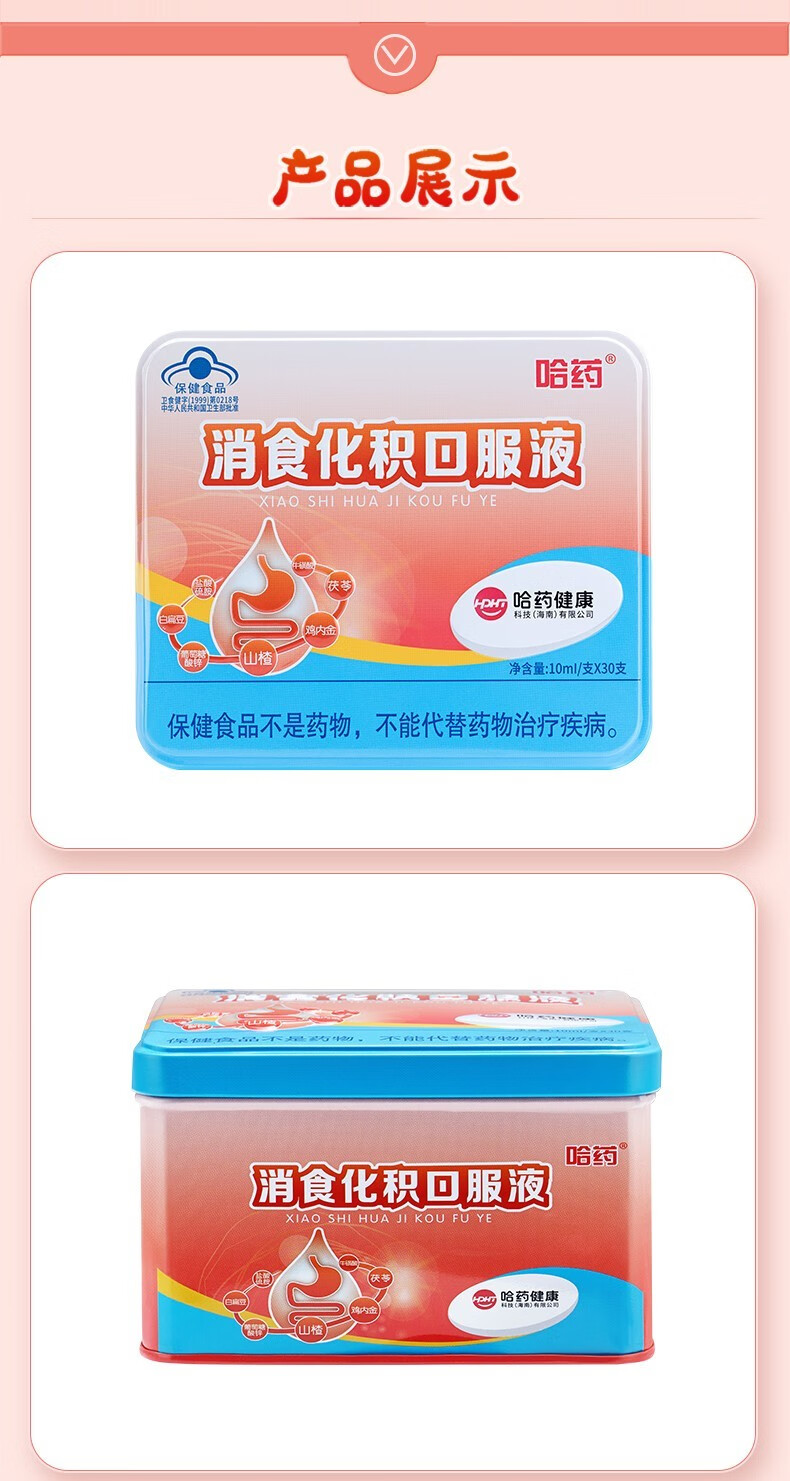 哈药消食化积口服液10ml*30支*2盒装 山楂鸡内金葡萄糖酸锌 儿童促进消化少年消化不良 肠胃养护