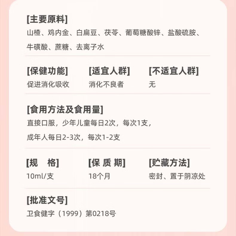 哈药消食化积口服液10ml*30支 1盒装 山楂鸡内金葡萄糖酸锌 儿童促进消化少年消化不良 肠胃养护