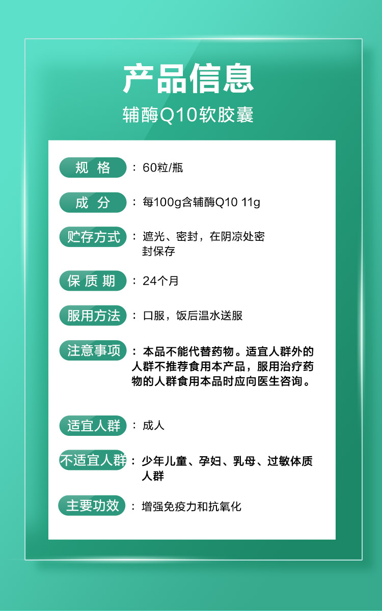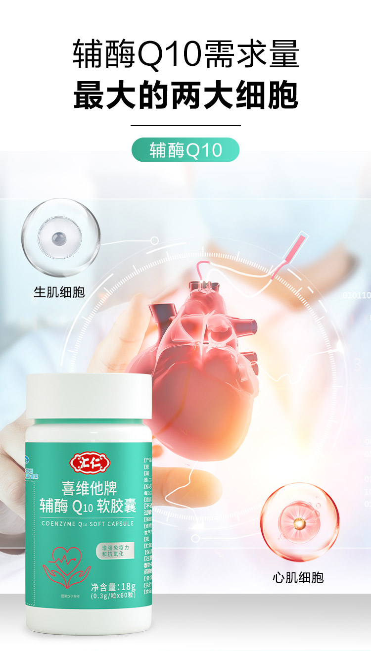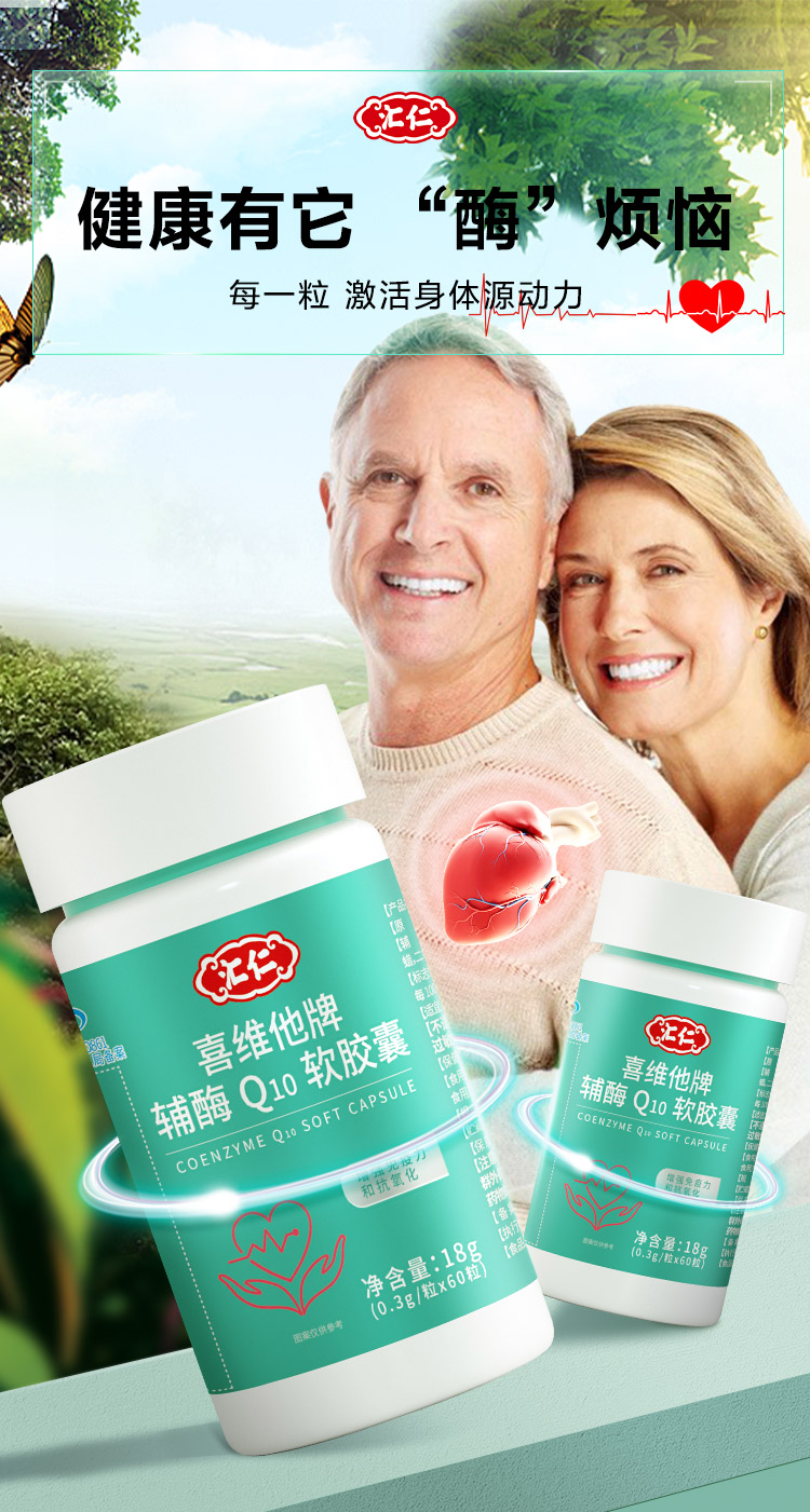 汇仁喜维他牌辅酶Q10软胶囊18克(0.3g/粒*60 粒)成人心脏中老年免疫力