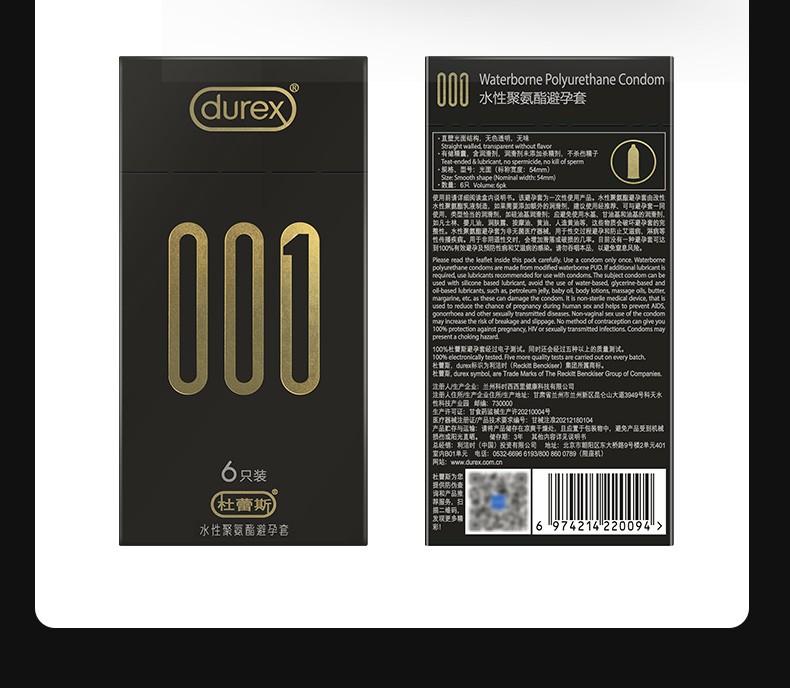 杜蕾斯避孕套 001水性聚氨酯避孕套 6只/盒