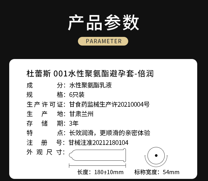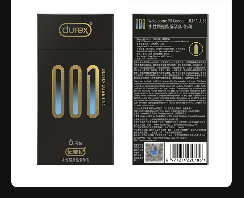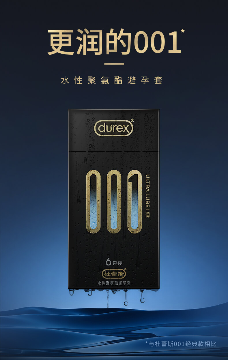 杜蕾斯避孕套 001水性聚氨酯避孕套-倍润 6只/盒